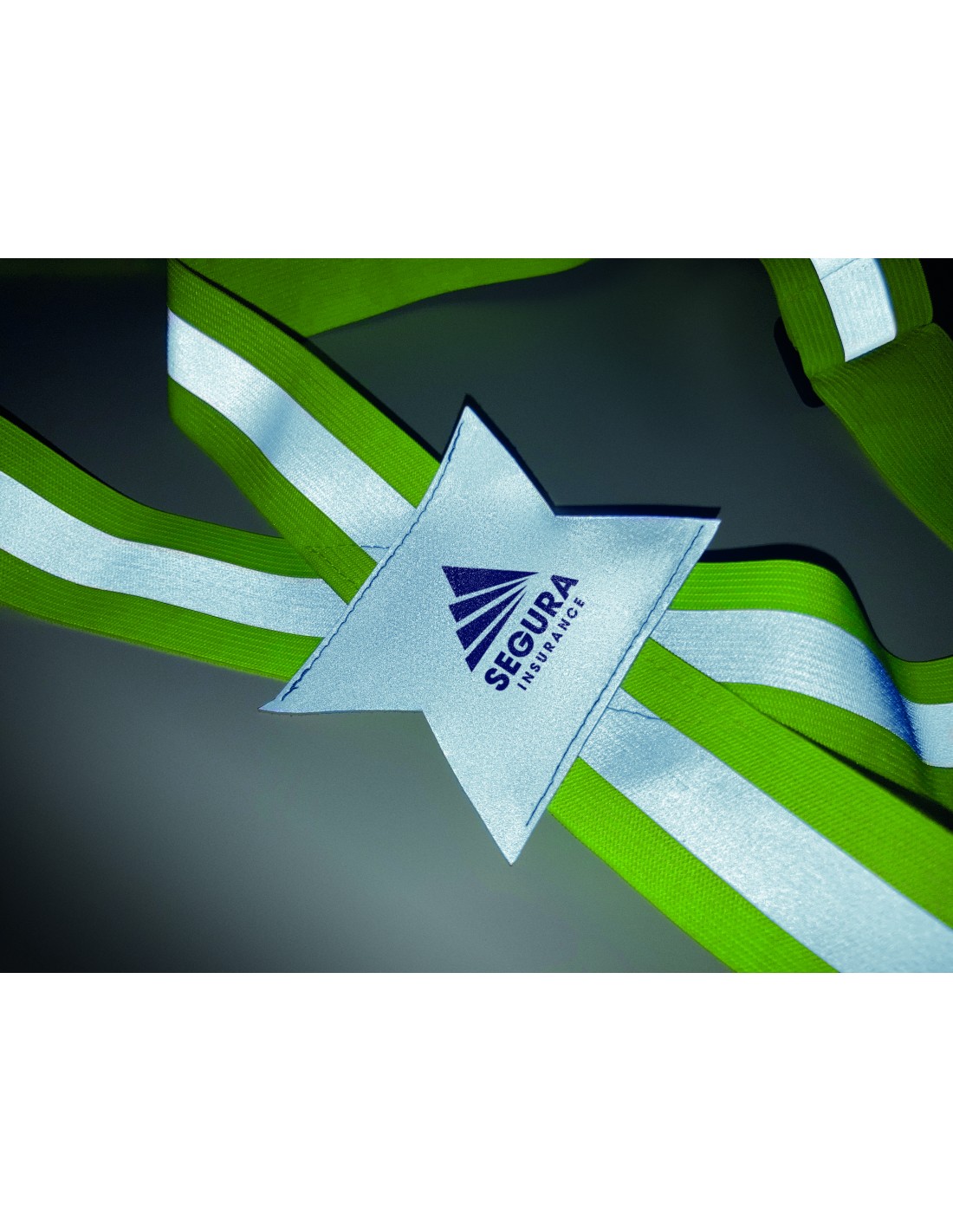 Braccialetto riflettente pieghevole in PVC con retro in PVC blanco. Solo per uso promozionale. 32x3cm.