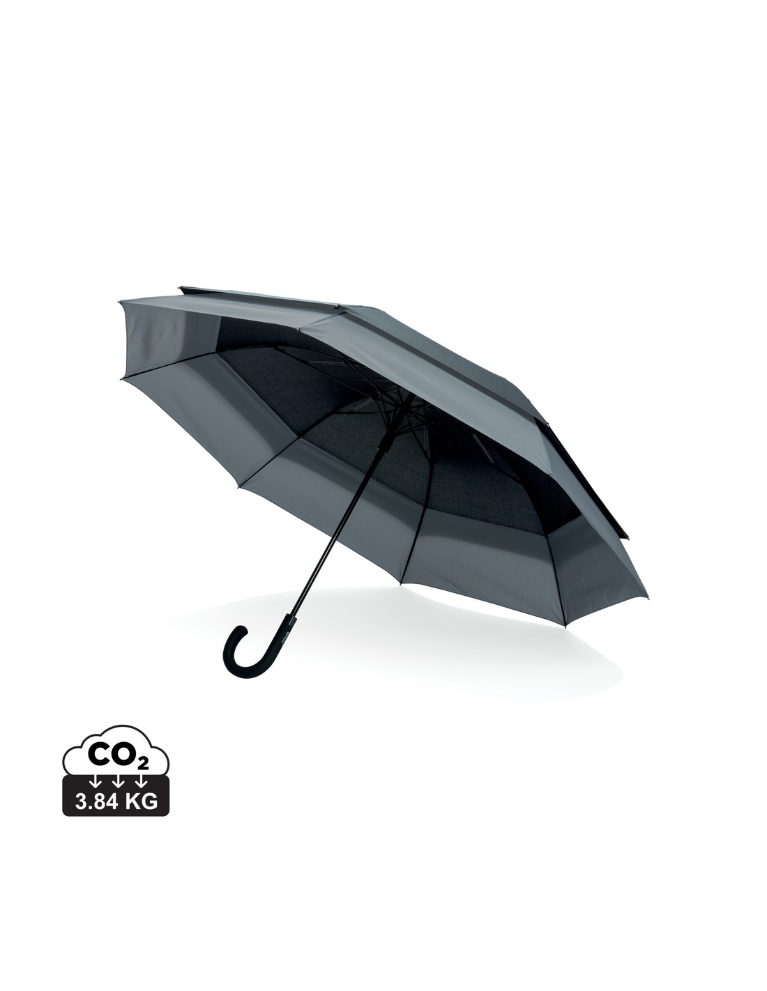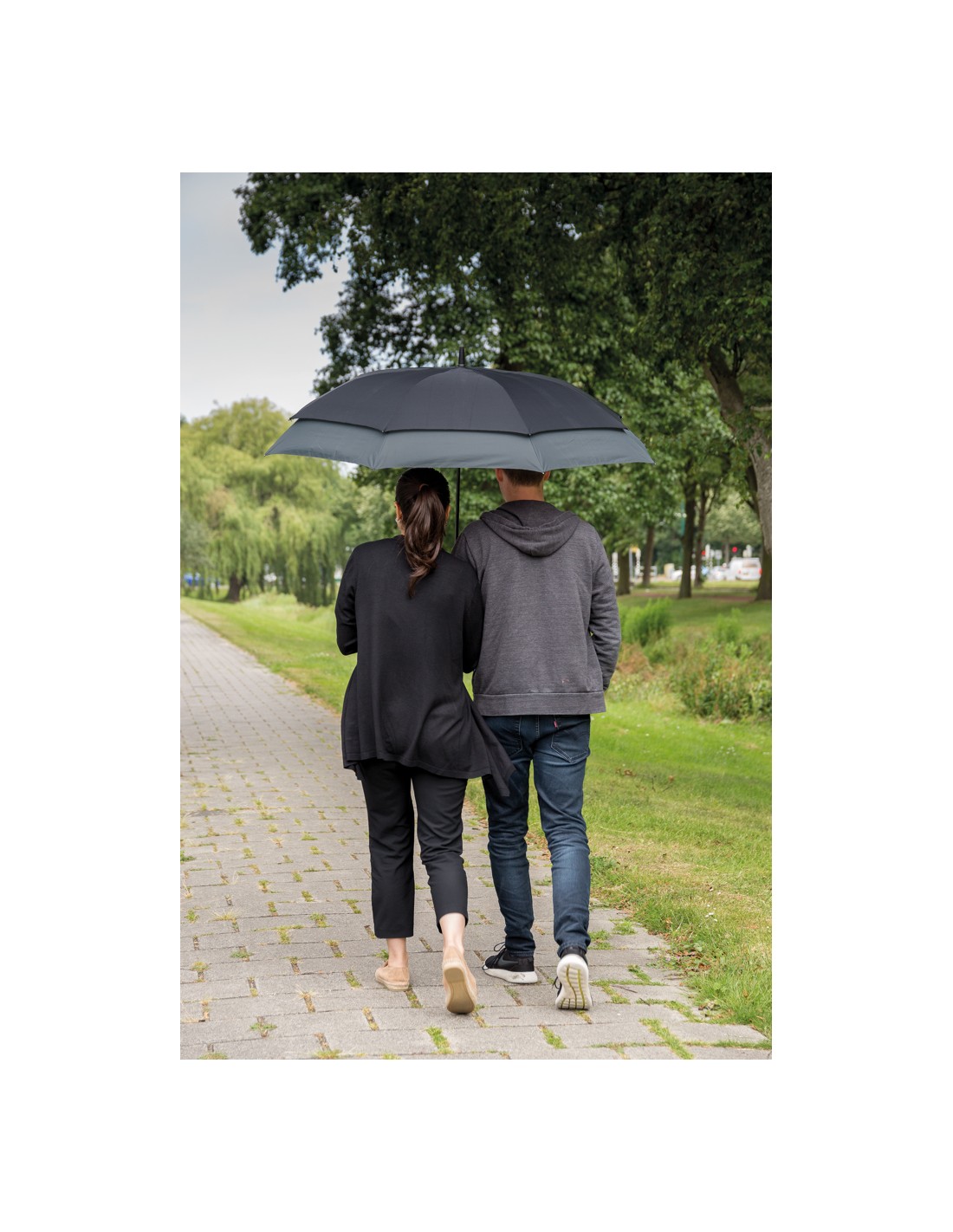 Questo ombrello ad apertura automatica è stato progettato per essere allo stesso tempo compatto e spazioso, garantendo una protezione ottimale dalla pioggia. Quando è piegato, è piccolo e leggero come un ombrello da 23", quindi facile da trasportare. All'apertura, l'ombrello si espande automaticamente fino a una dimensione di 27", offrendo una protezione sufficiente per due persone. È dotato di asta in metallo, stecche in fibra di vetro, puntale in PP e manico nero opaco. La funzione a prova di pioggia garantisce la massima protezione contro la pioggia. Realizzato con il tracciante AWARE™ che convalida l'uso reale di materiali riciclati. 100% poliestere riciclato 190T pongee. Il 2% del ricavato di ogni prodotto Aware™ venduto sarà devoluto a Water.org.