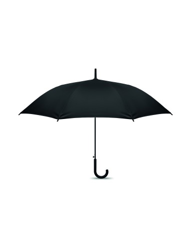 Ombrello antivento dritto ad apertura automatica da 23 pollici con struttura in fibra di vetro e pannelli in tessuto pongee 190T. Punte e sommità in plastica. Manico curvo in plastica PP gommata. Chiusura manuale.