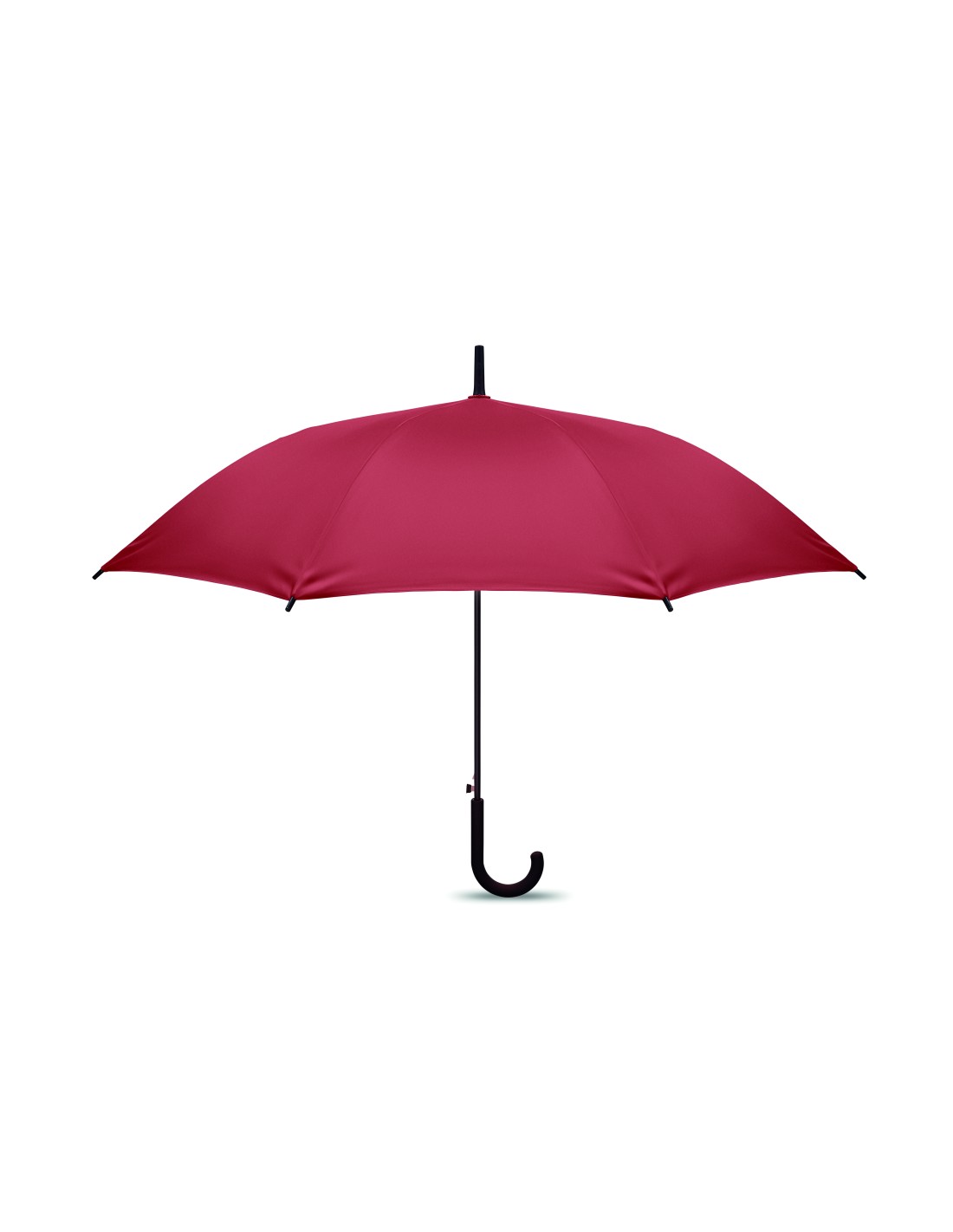 Ombrello antivento dritto ad apertura automatica da 23 pollici con struttura in fibra di vetro e pannelli in tessuto pongee 190T. Punte e sommità in plastica. Manico curvo in plastica PP gommata. Chiusura manuale.