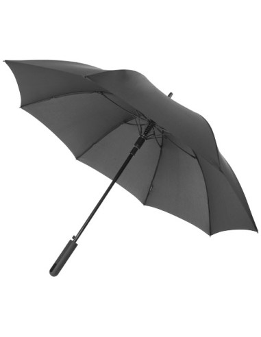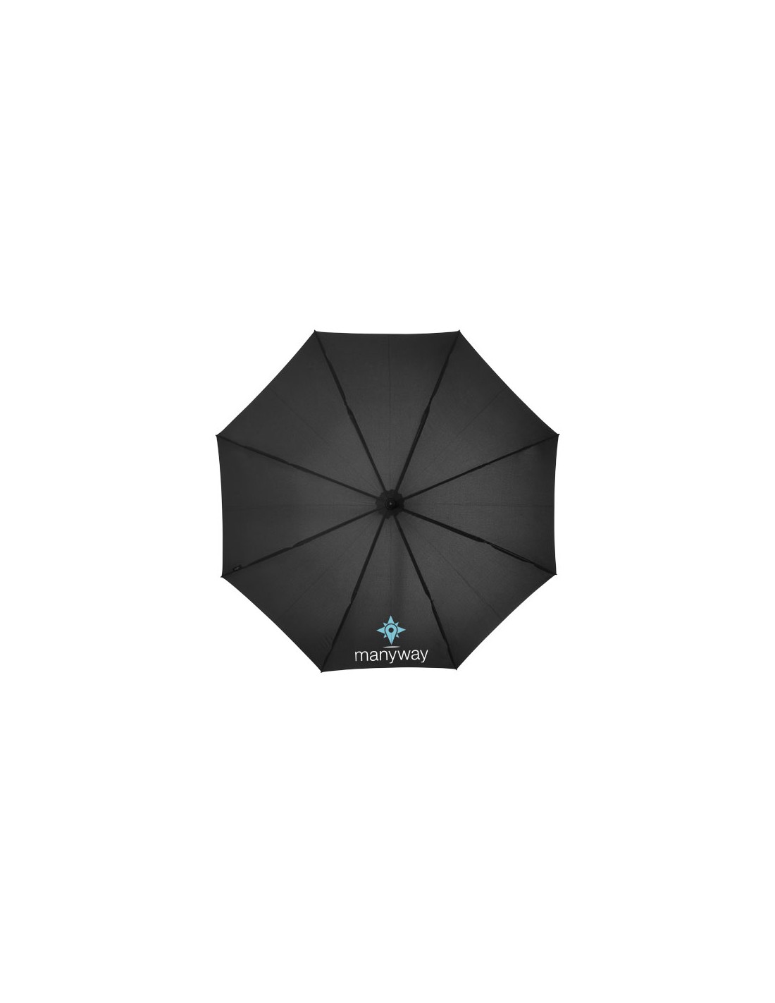 Ombrello antivento, da 30 pollici, apertura manuale. In poliestere 190T, 8 pannelli. Struttura e particolari in fibra di vetro. Punta in plastica. Manico dritto in EVA nero. Chiusura manuale.