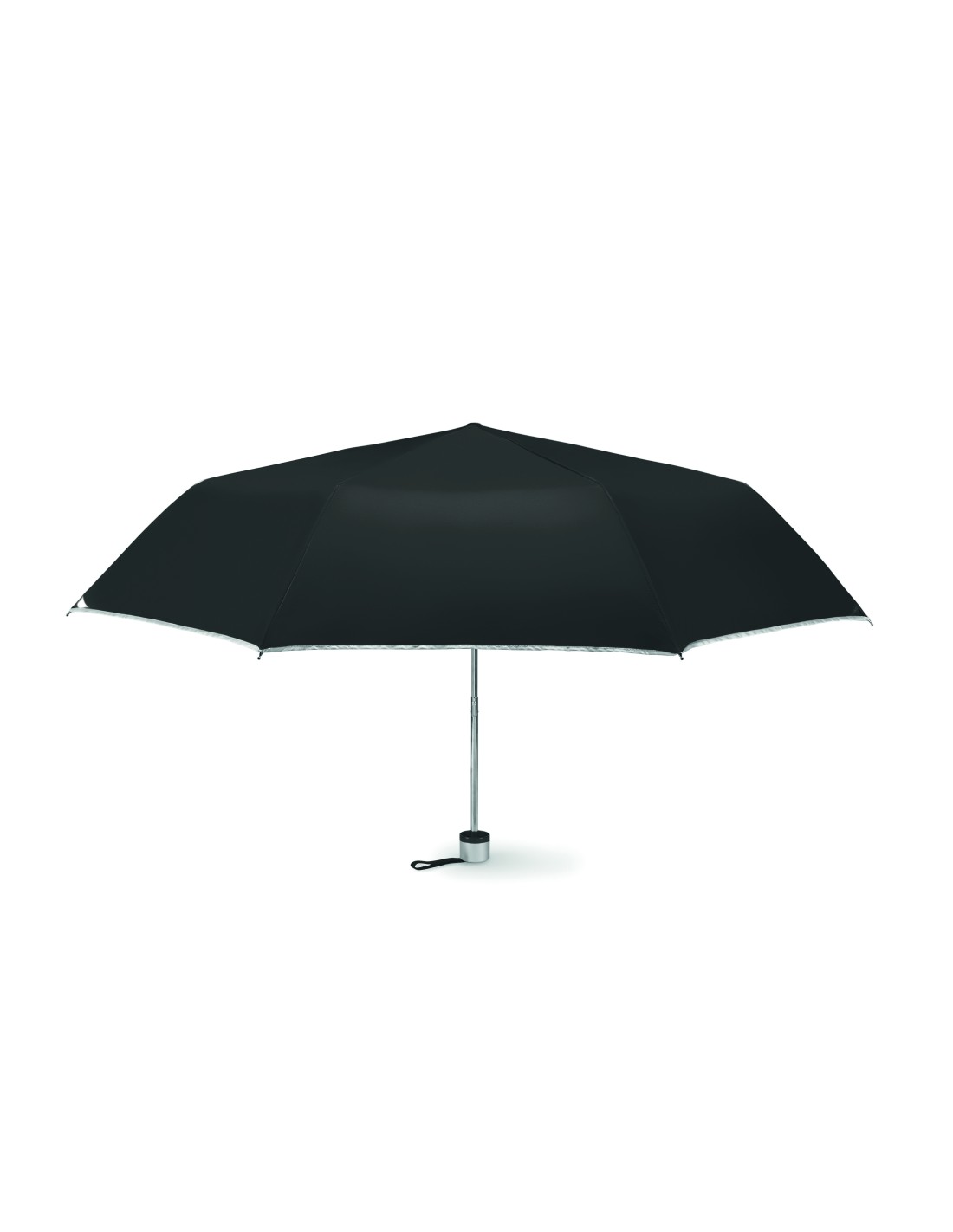 Ombrello con chiusura e apertura automatica con stoffa in poliestere pongee e PET riciclato. Robusto albero metallico e telaio di alta qualità con stecche in fibra di vetro per la massima flessibilità in condizioni di vento. Fornito con un sacchetto e può essere facilmente inserito in una borsa o...