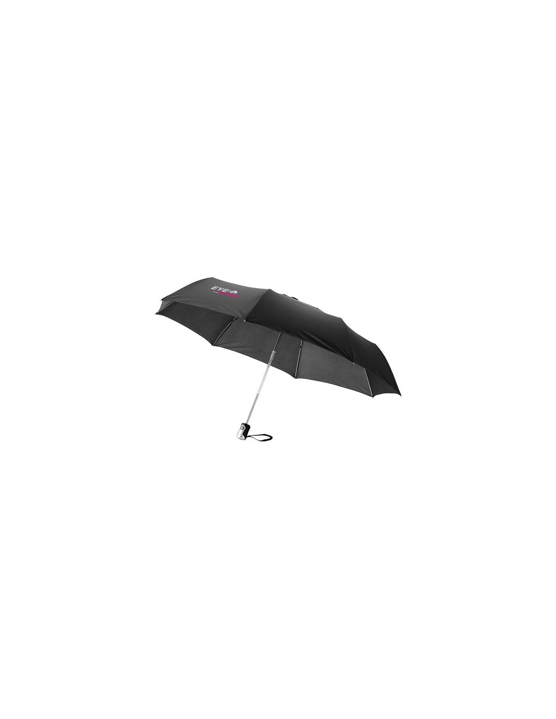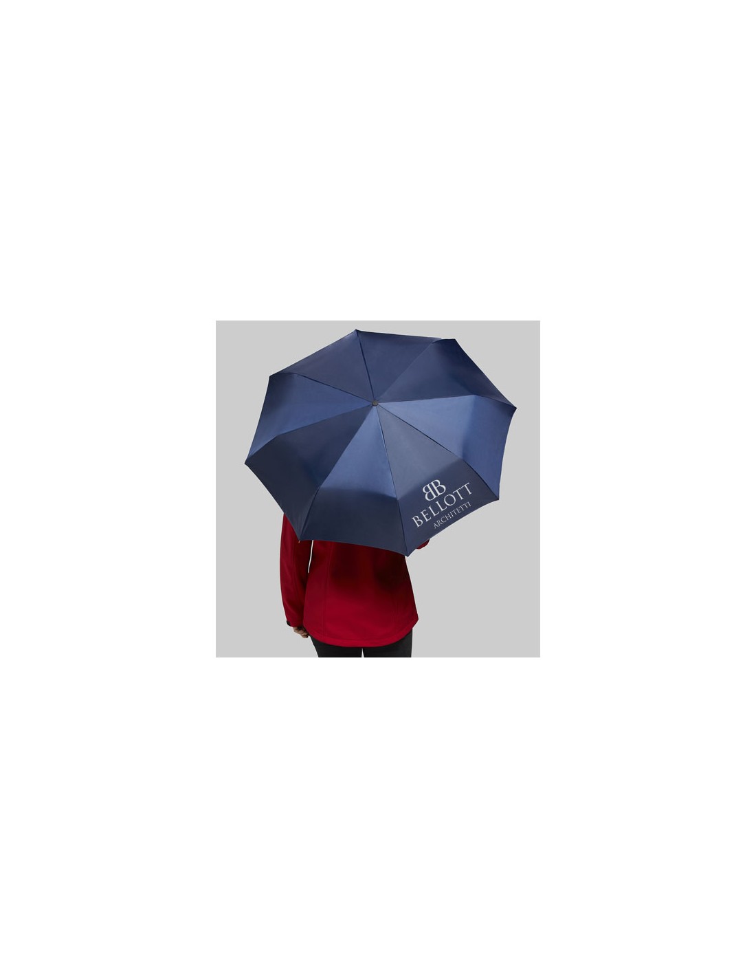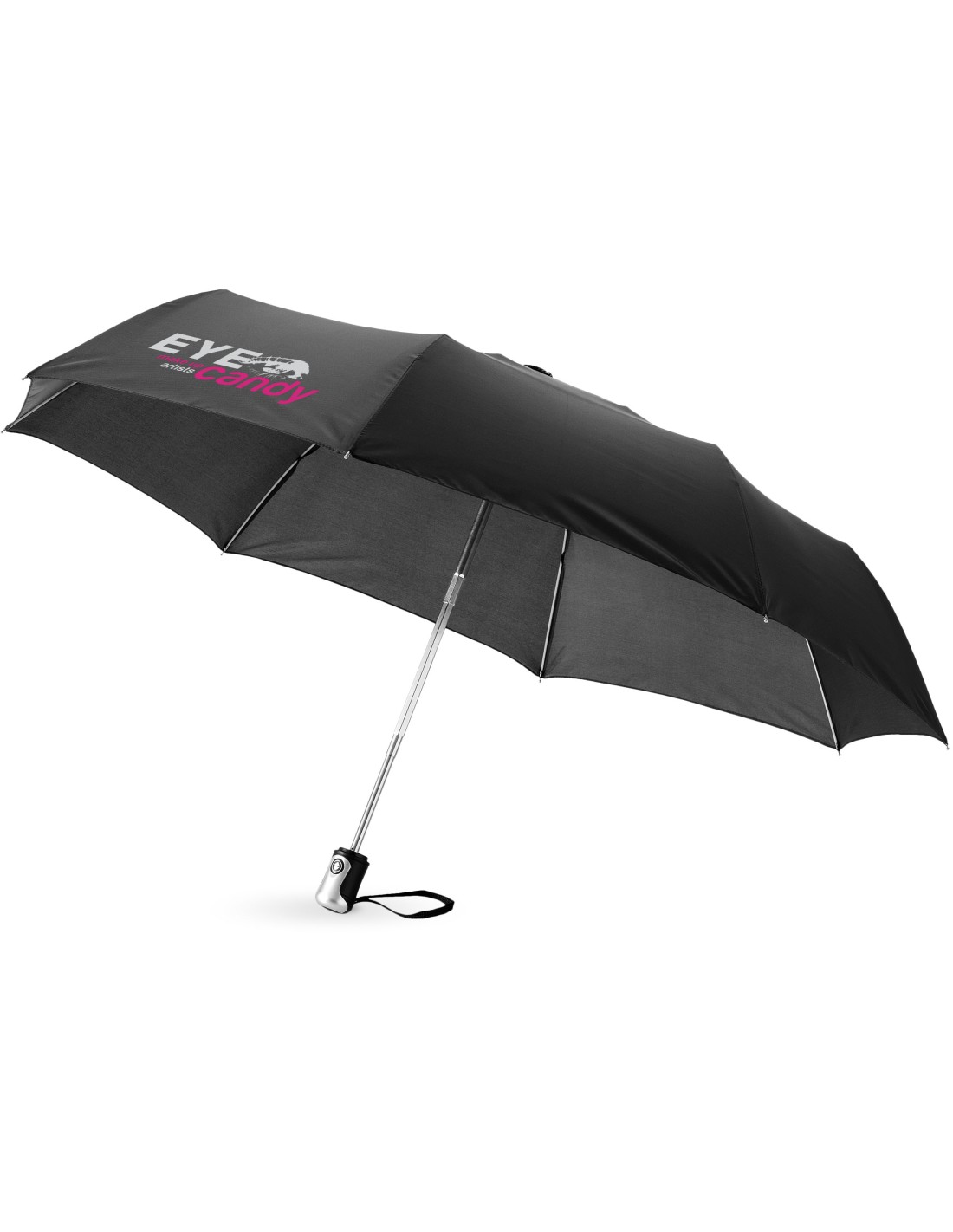 Ombrello 3 sezioni dal design esclusivo con apertura automatica. Asta nera in metallo, stecche in fibra di vetro e manico in plastica gommata. Fornito con custodia che richiama il colore della copertura. Si piega fino a 31 cm.