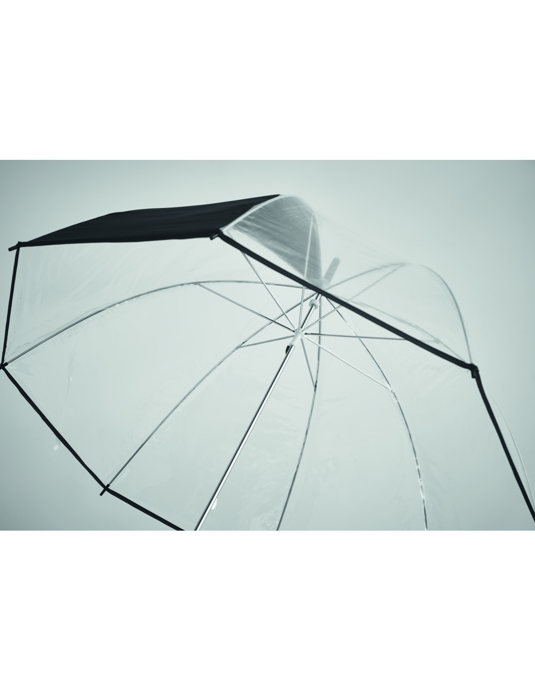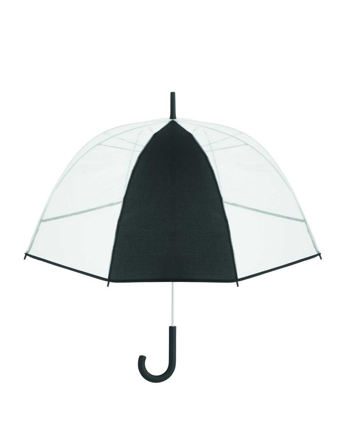 Ombrello dritto da 23''in POE con bordatura in PG e 1 pannello in poliestere per l'area di stampa. Apertura manuale. Struttura in fibra di vetro. Stelo cromato con punte in plastica. Manico rifinito in gomma.