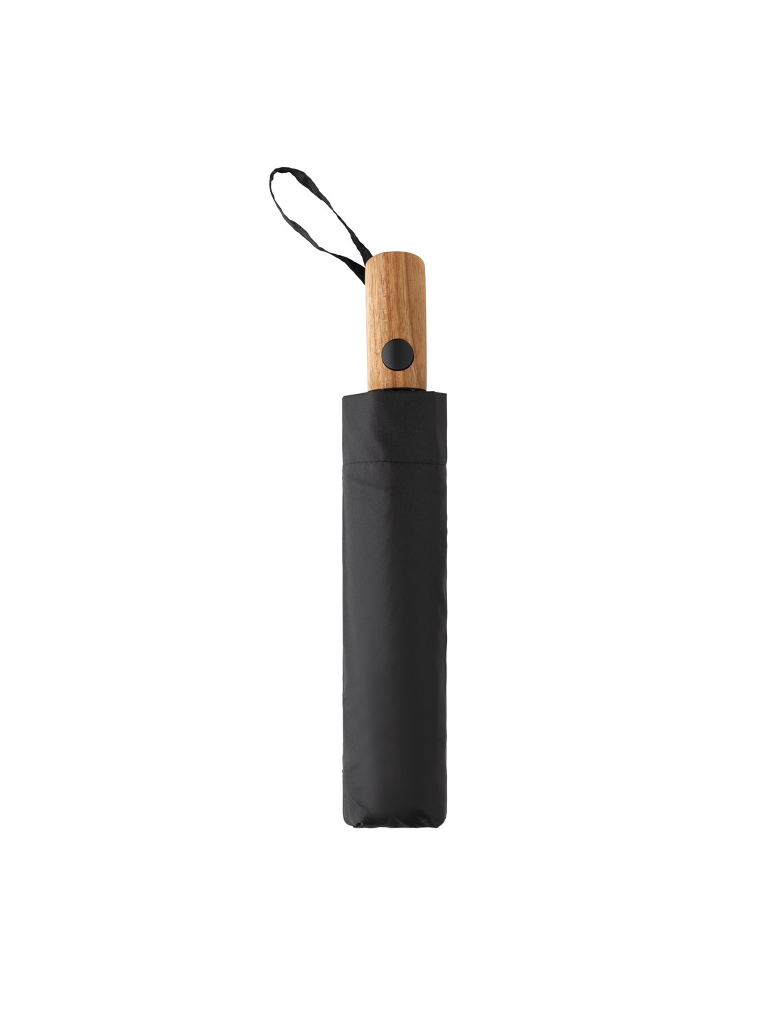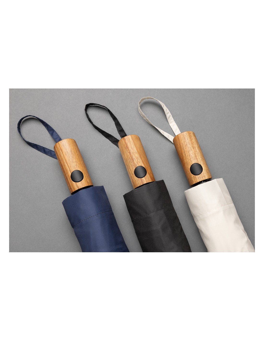 Questo mini-ombrello compatto, a 3 pezzi e ad apertura automatica, è ideale da tenere in borsa o in auto in caso di maltempo. Presenta una struttura in metallo, stecche in fibra di vetro e un bellissimo manico in legno di acacia certificato FSC®. E' realizzato in rPET, che contiene un tracciante AWARE™ che attesta l'autenticità dei materiali riciclati. Il 2% del ricavato di ogni prodotto Aware™ venduto sarà devoluto a Water.org. Da notare che il manico in legno di acacia può variare leggermente nel colore e nella consistenza. Ciò non influisce sulla sua funzionalità o durata.