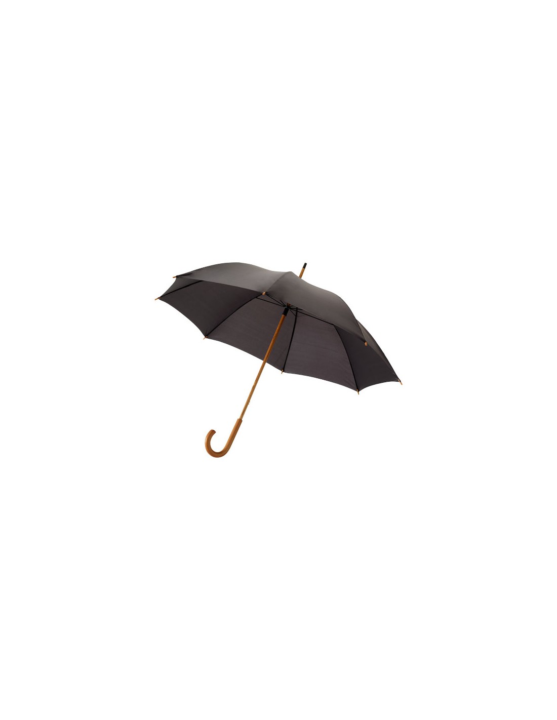 Ombrello 23" con manico in legno, asta in legno e stecche in metallo.