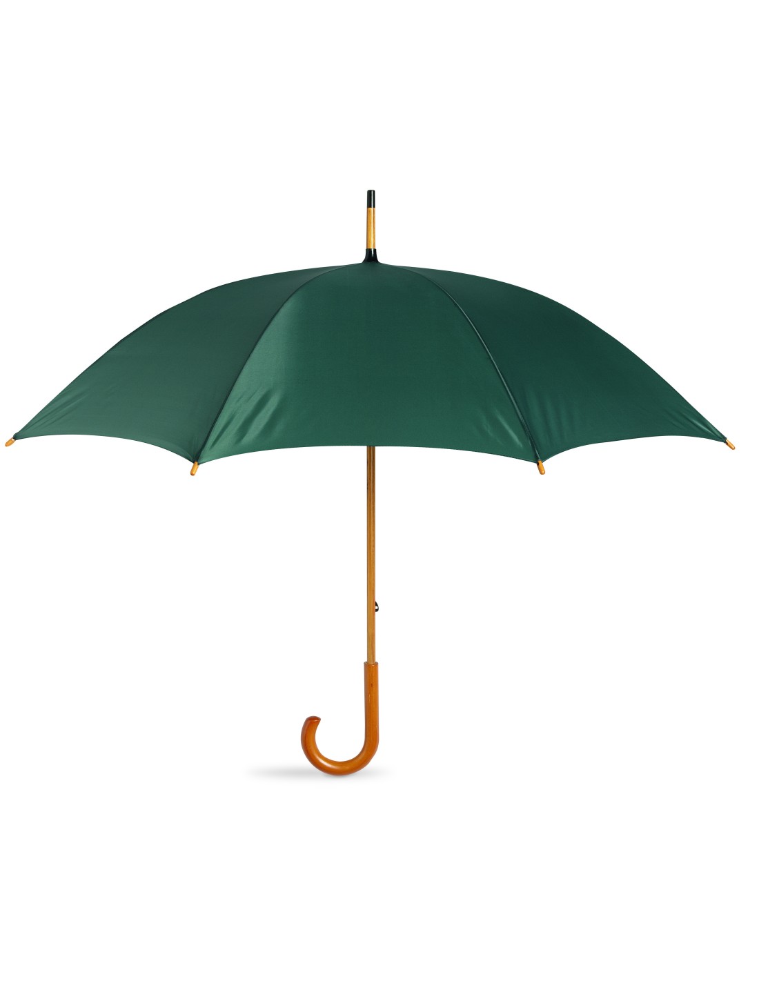 Ombrello (23 pollici), 8 pannelli, impugnatura in legno ed apertura manuale. In poliestere 190T.
