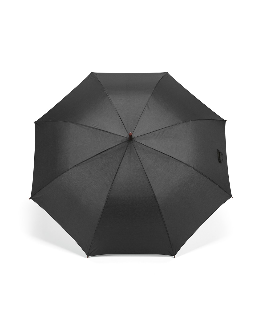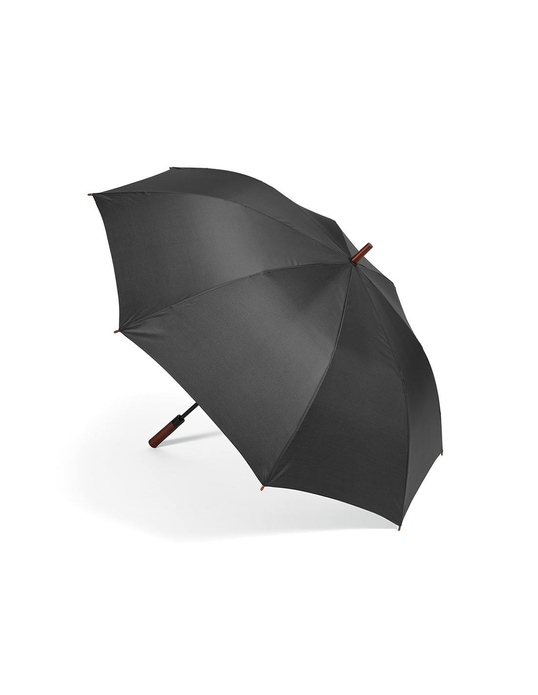 Ombrello antivento apertura automatica da 23 pollici in pongee 190T con motivo interno checkerd. Struttura in fibra di vetro con fusto placcato nero e punte in plastica. Manico curvo rifinito in gomma. Chiusura manuale.
