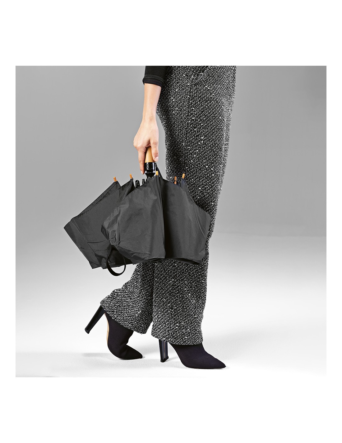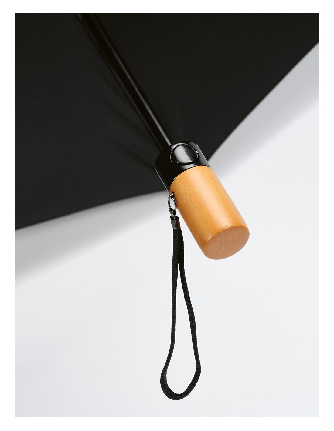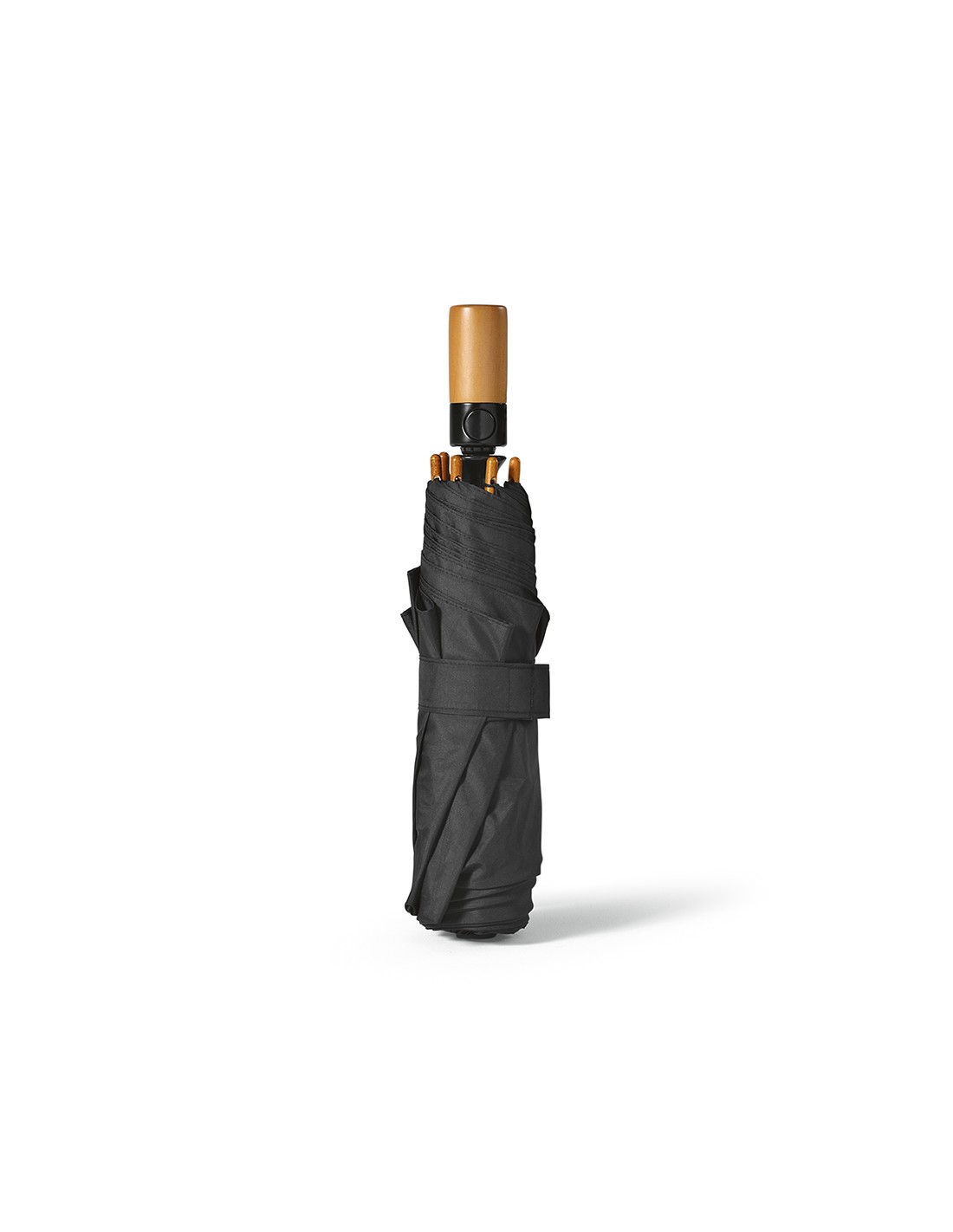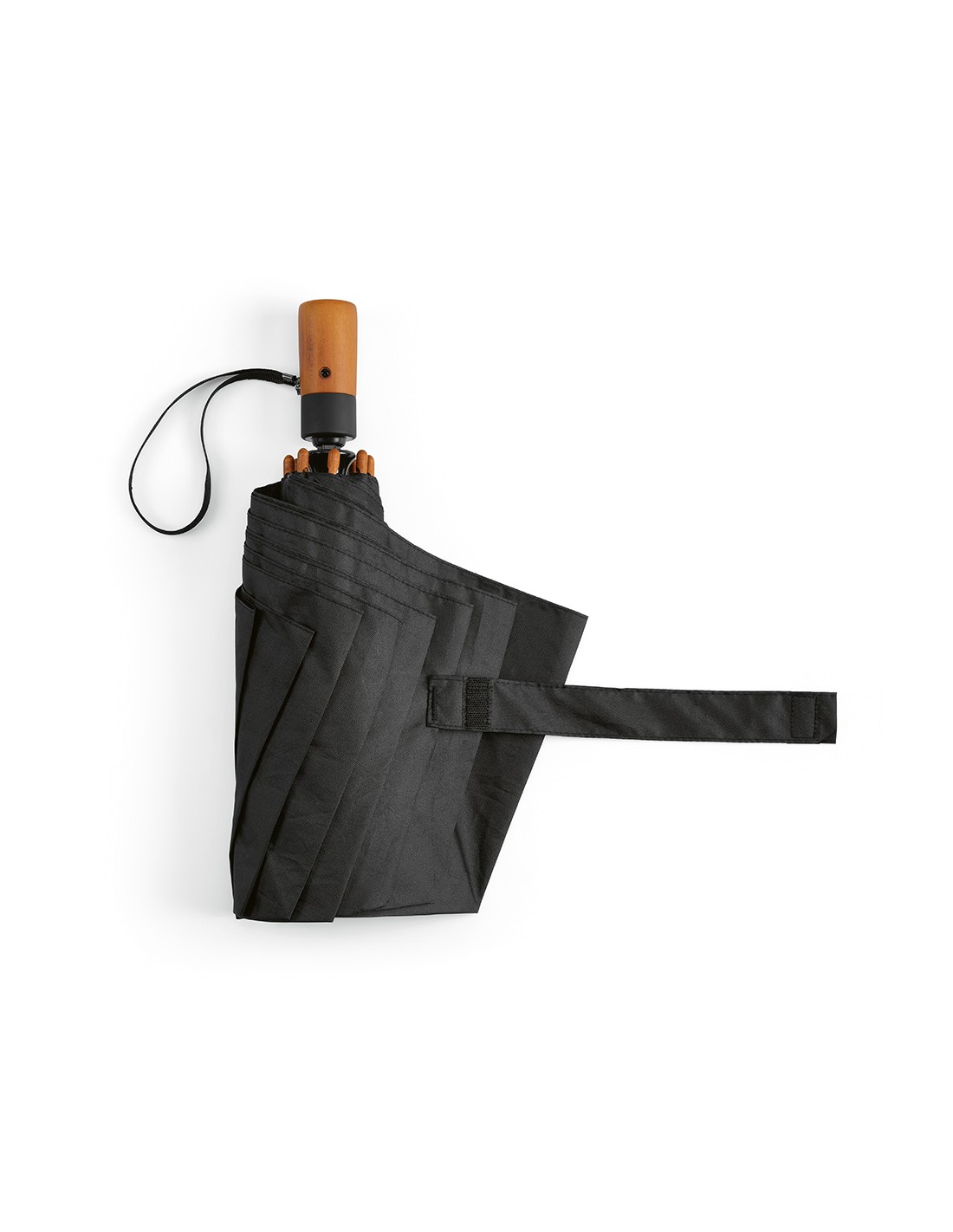 Ombrello pieghevole Jackson 27'' in rPET. Con apertura e chiusura automatica, è molto pratico da trasportare. Struttura resistente al vento in fibra di vetro, manico in legno e asta in alluminio riciclato. Fornito con custodia individuale in rPET.