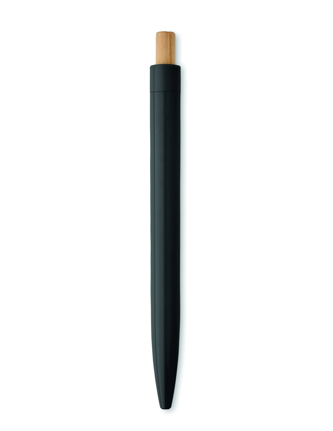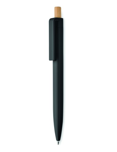 Penna a sfera a pulsante in ABS riciclato con pulsante in bamboo. Inchiostro blu.
