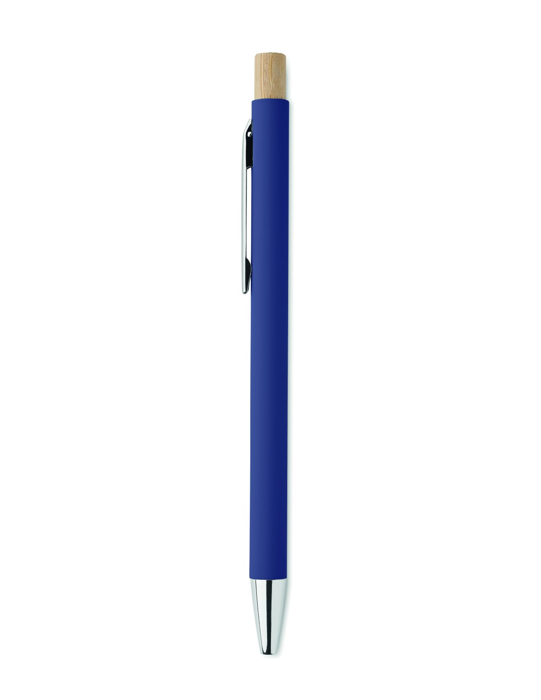 Penna push ball in alluminio riciclato. Punta e clip argentate. Inchiostro blu.