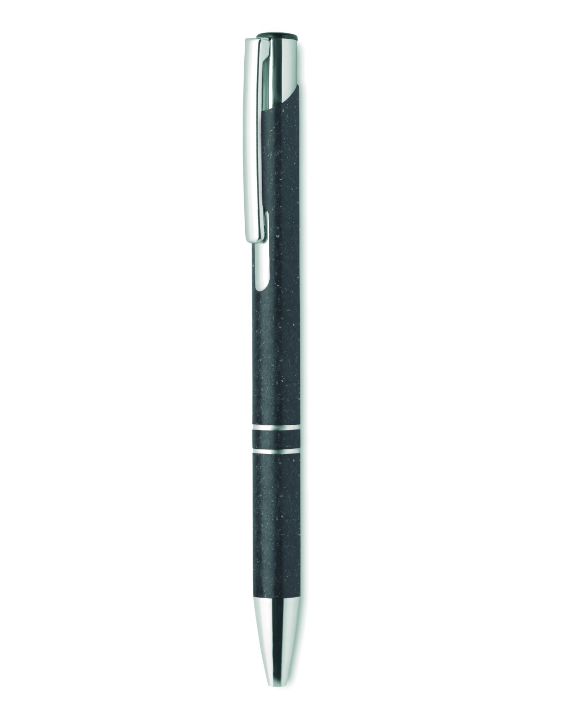 Penna a sfera push in paglia di grano 50% e ABS 50% con dettagli in argento. Refill blu.