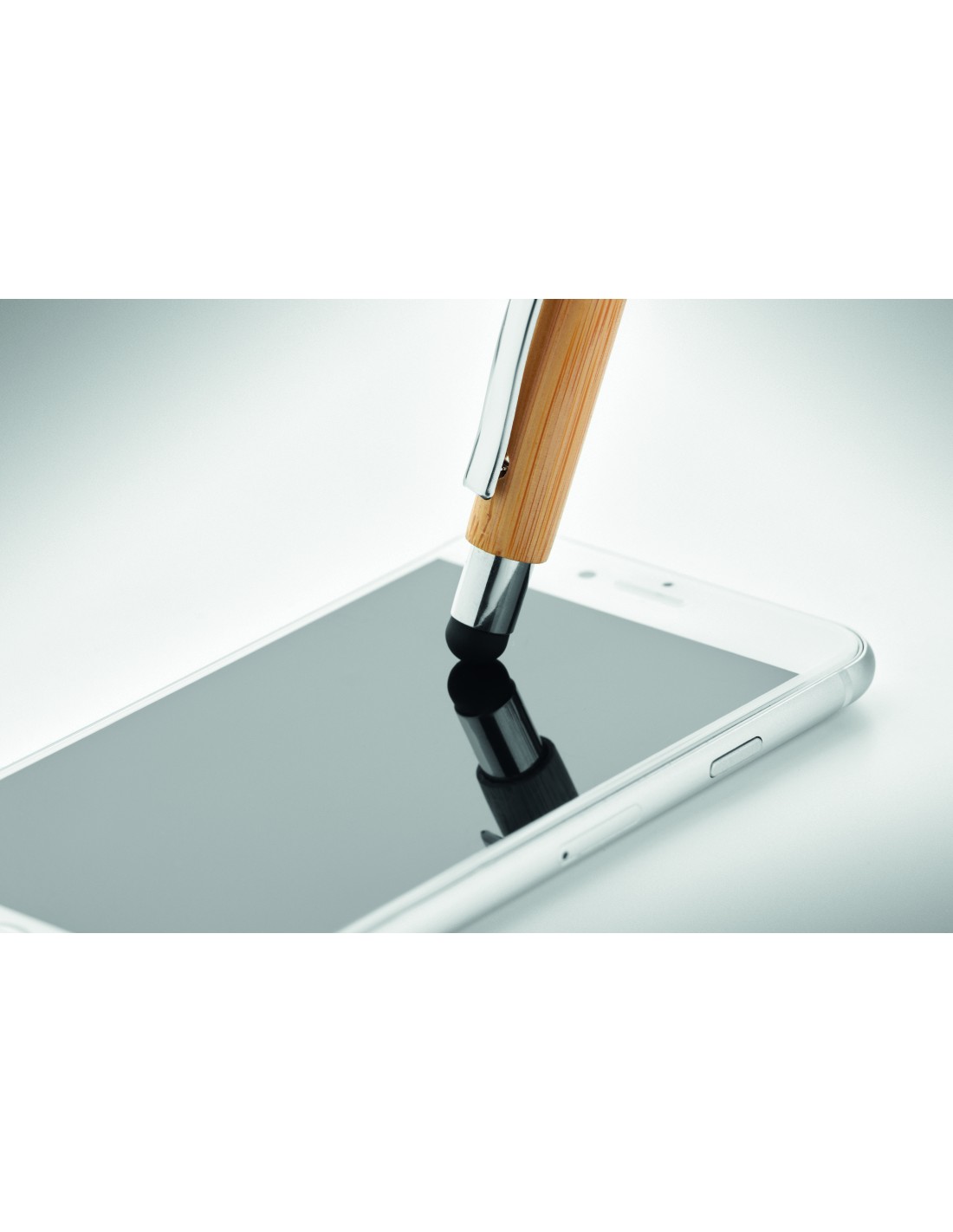 Penna a pulsante con fusto in bambù e clip in metallo. Inchiostro blu.