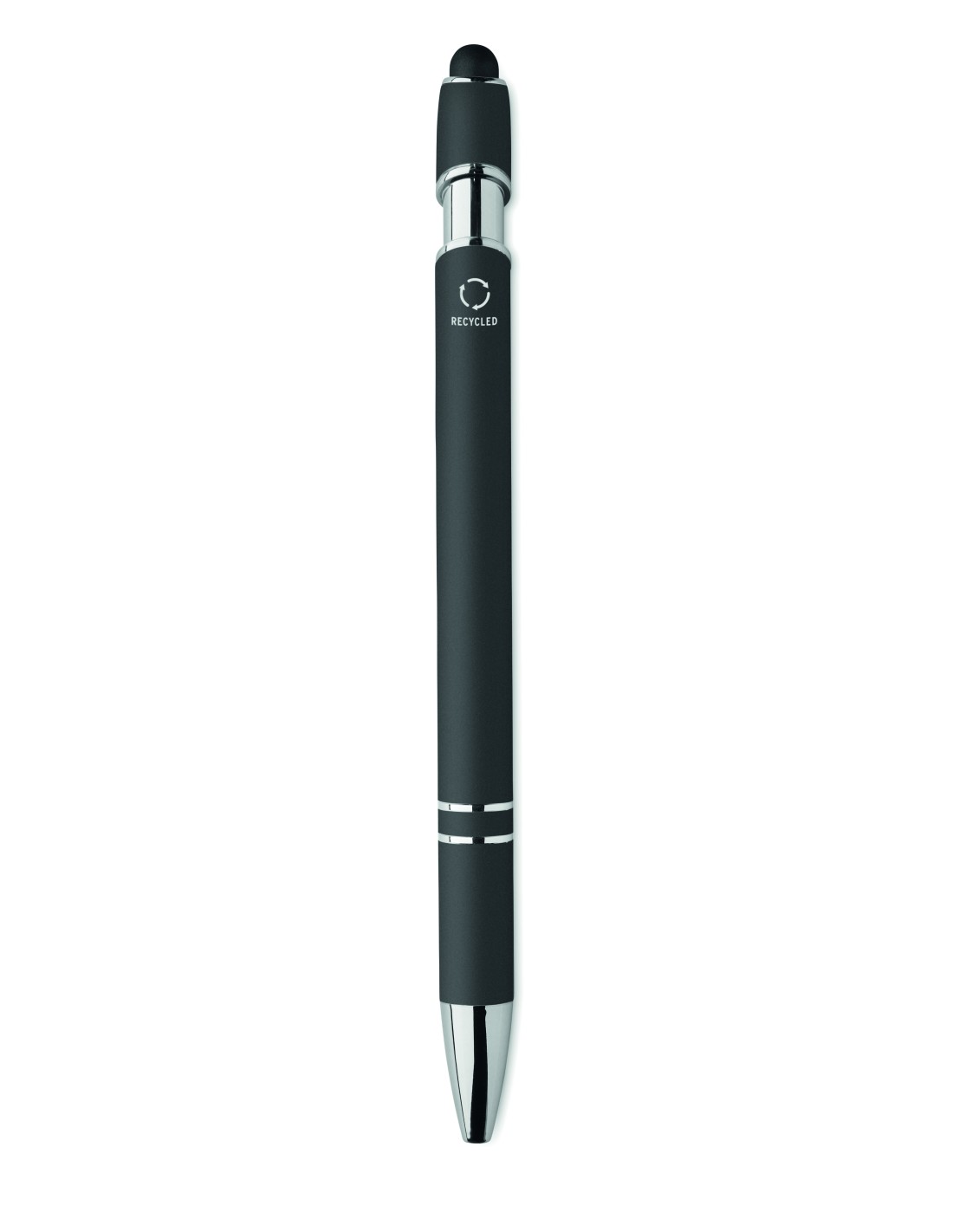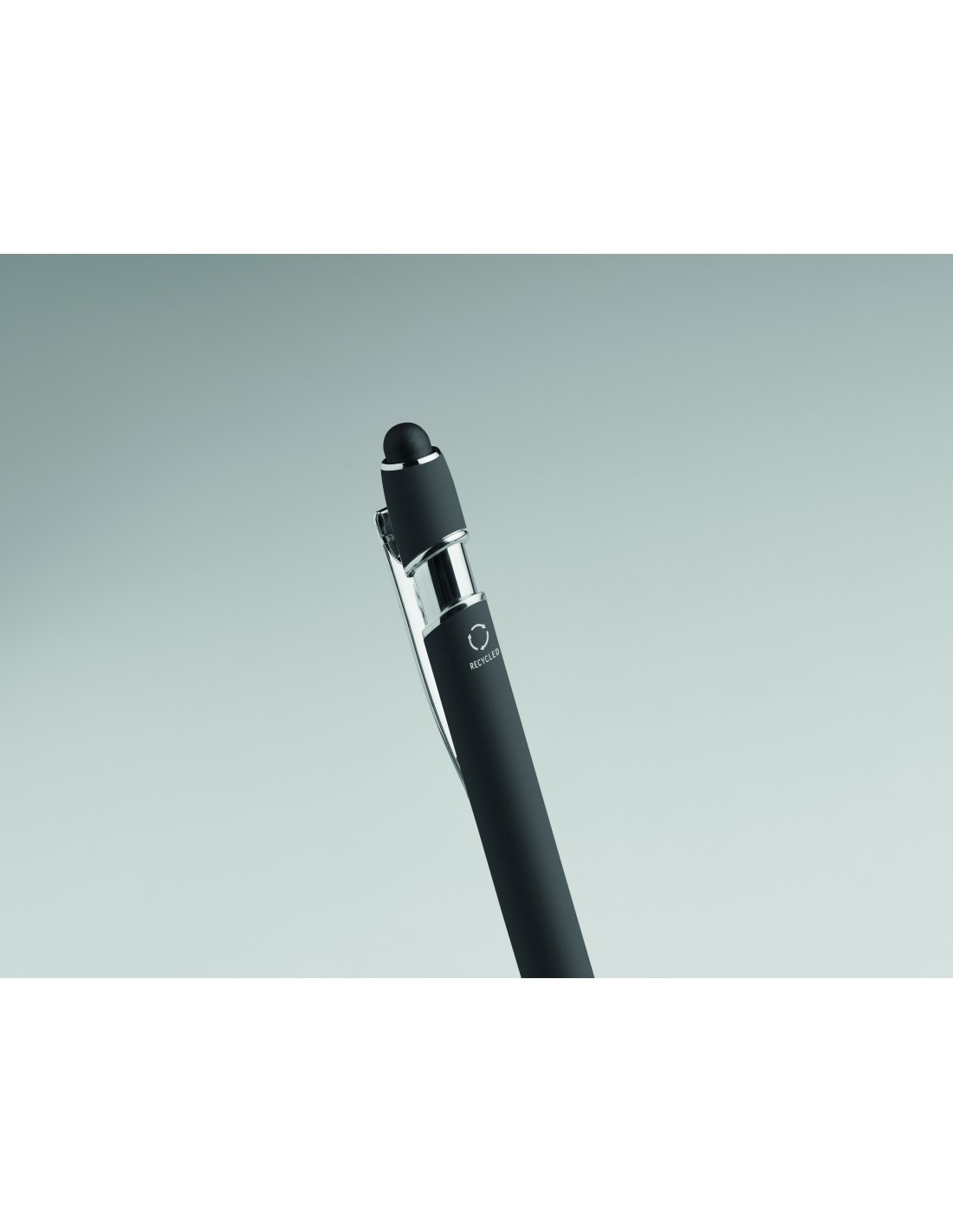 Penna a sfera in metallo con fusto in tessuto composto per il 20% da fondi di tè, per il 30% da sughero e per il 50% da tessuto di policotone TC, in confezione di cartone. Inchiostro blu.