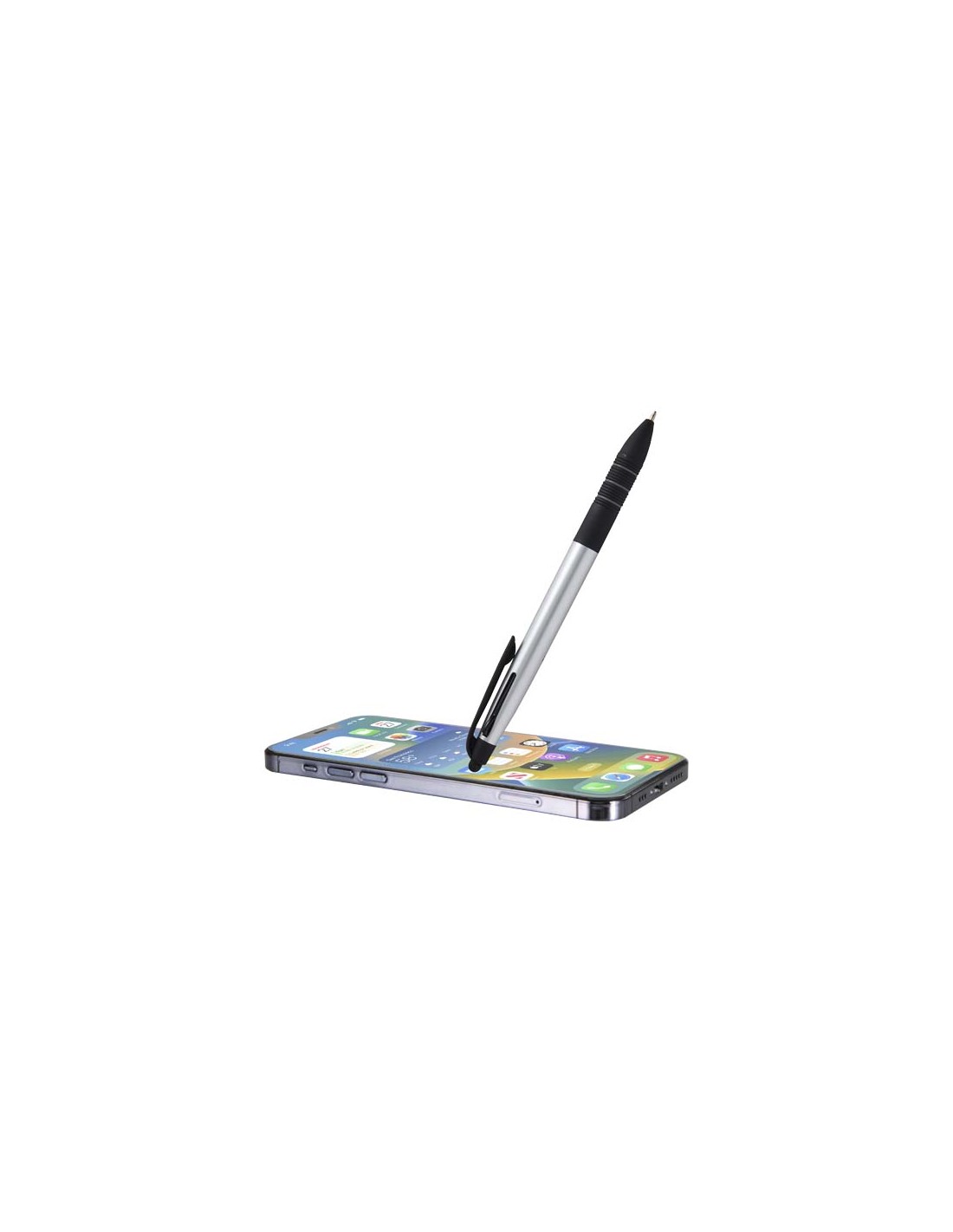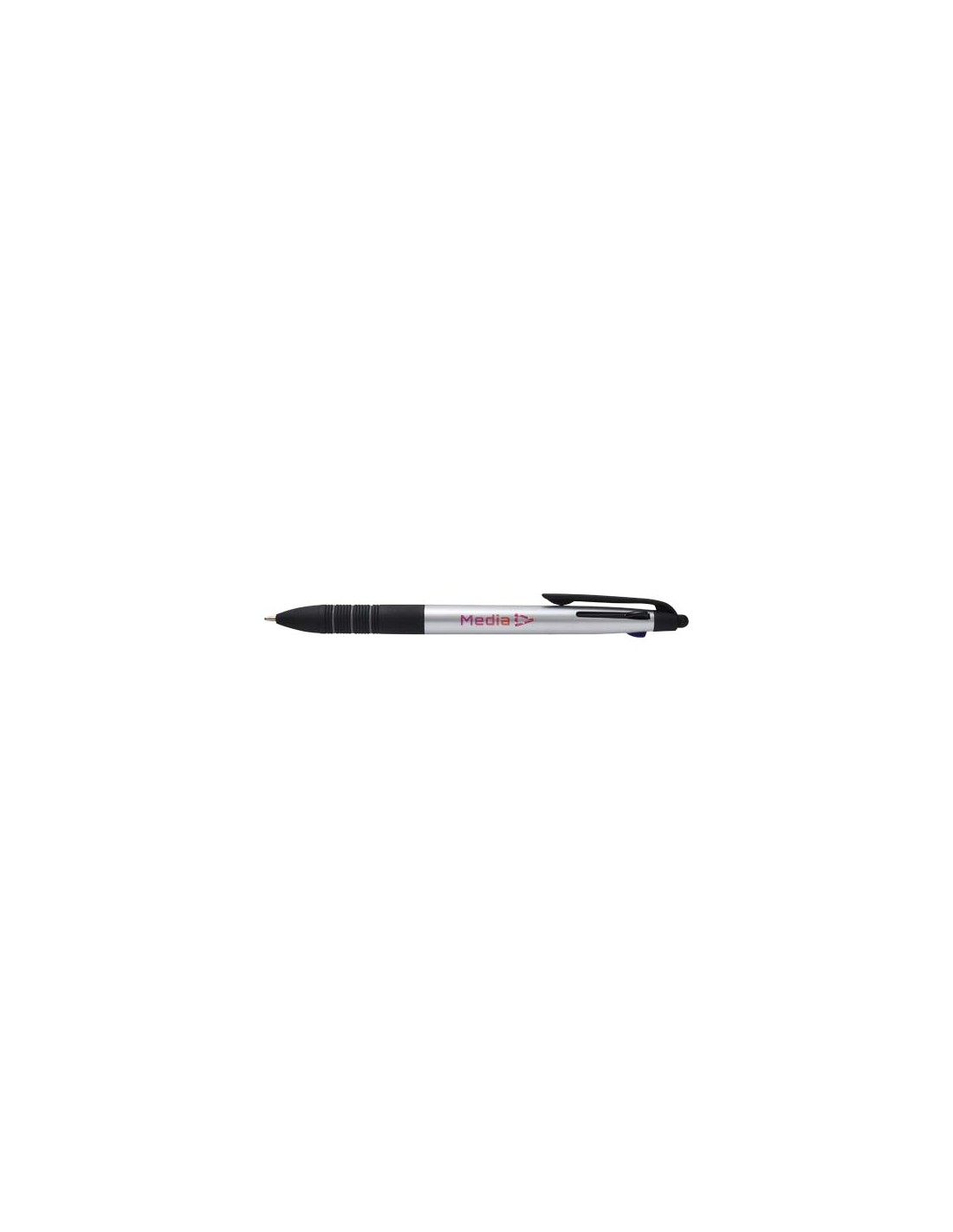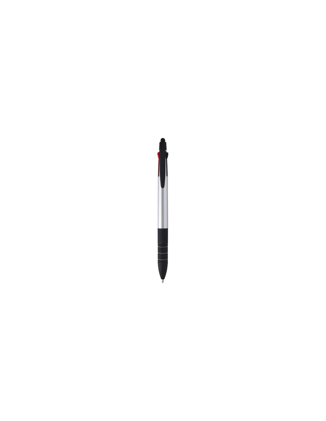 La penna a sfera Trine è uno strumento di scrittura 3 in 1 versatile realizzato in plastica ABS certificata RCS con una moderna finitura metallica e una punta a stilo per utilizzare i touchscreen. È dotato di un meccanismo di scorrimento a pressione per passare facilmente dall'inchiostro nero, blu e rosso. L'impugnatura ergonomica con gomma nera antiscivolo e dettagli ad anello grigi assicurano un utilizzo confortevole. Compatta, funzionale e ideale per il branding, la penna Trine è perfetta per prendere appunti, per le presentazioni o per le interazioni digitali.