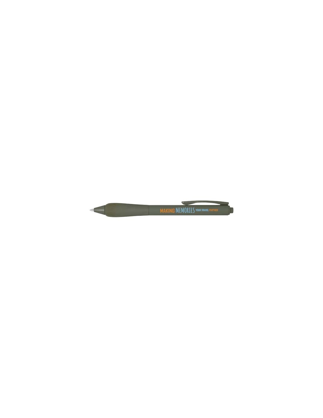 Penna a sfera con fusto superiore realizzato in plastica riciclata e parte inferiore realizzata in alluminio riciclato. La penna è dotata di una clip a bilanciere in metallo con molla, che permette di agganciarla anche a oggetti più spessi come borse o quaderni. La clip scatta con un clic...