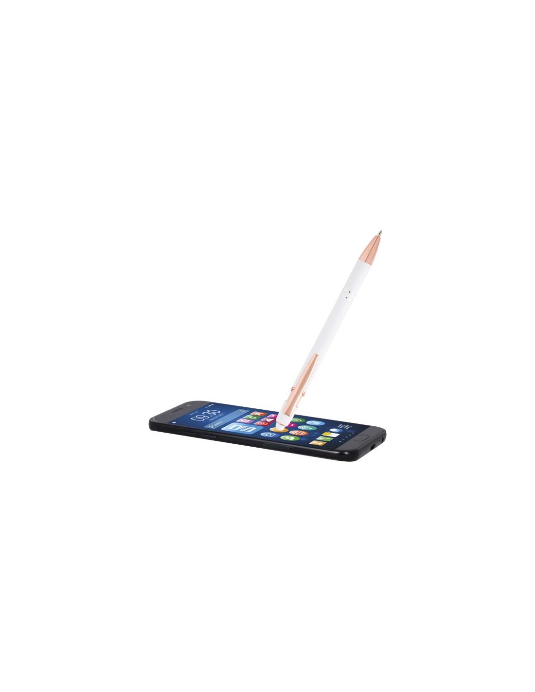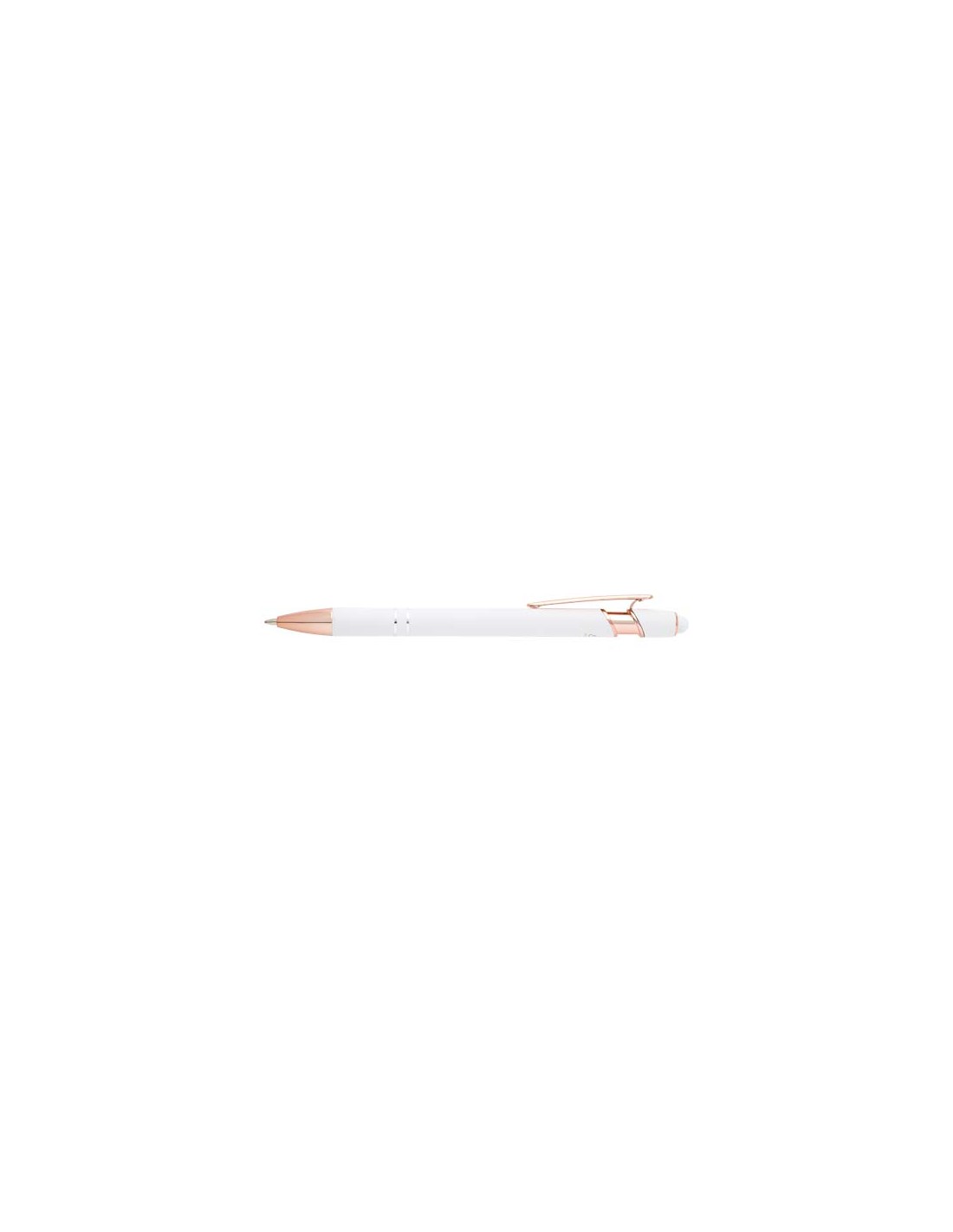 La penna a sfera Nanna con finitura oro rosa, presenta un fusto realizzato in alluminio riciclato con stilo tattile in silicone. L'alluminio riciclato riduce la quantità di rifiuti nelle discariche e aiuta a conservare le risorse naturali con l'obiettivo di ridurre le emissioni di gas serra. Colore dell'inchiostro: Blu. Capacità di scrittura: 800 metri. Dimensione del pennino: 1,0 mm.