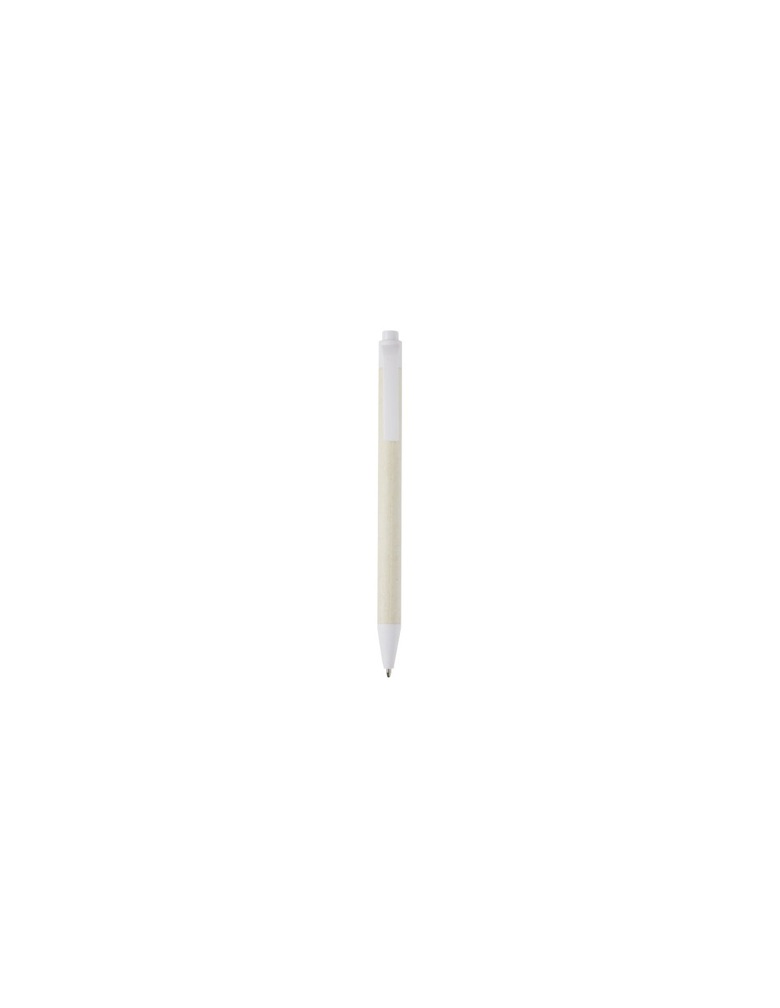 Penna a sfera con meccanismo scatto e fusto realizzato con cartoni del latte riciclati (fino al 70%). Il pulsante, la clip e la punta sono realizzati in plastica PLA. I cartoni del latte usati vengono raccolti, selezionati, lavorati e trasformati in carta, trasformando un semplice rifiuto in qualcosa di utile.