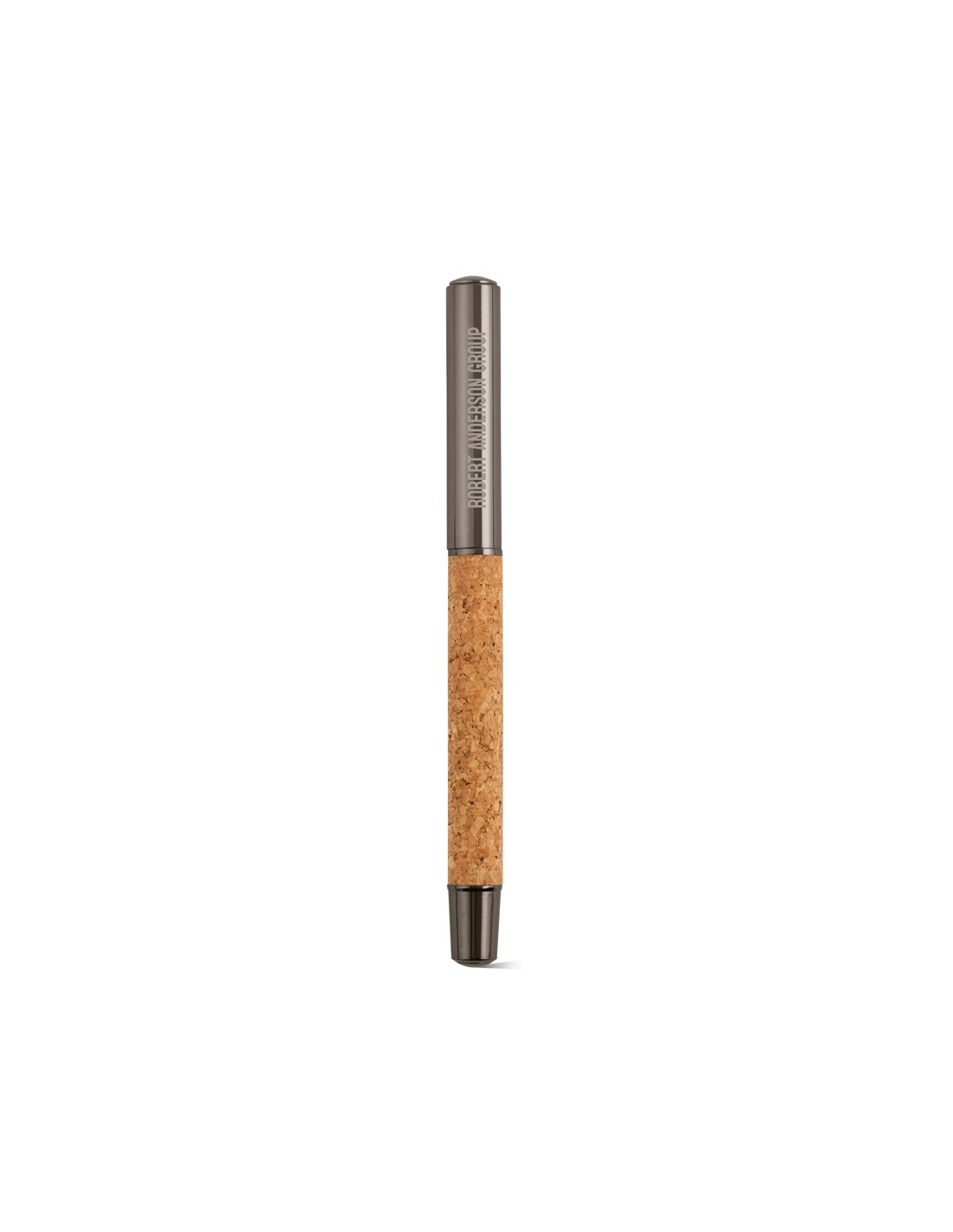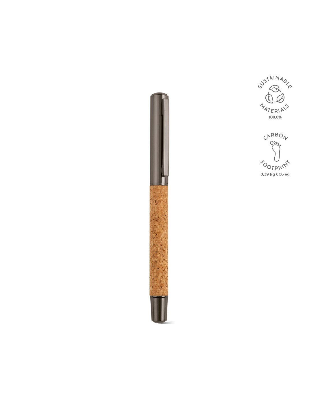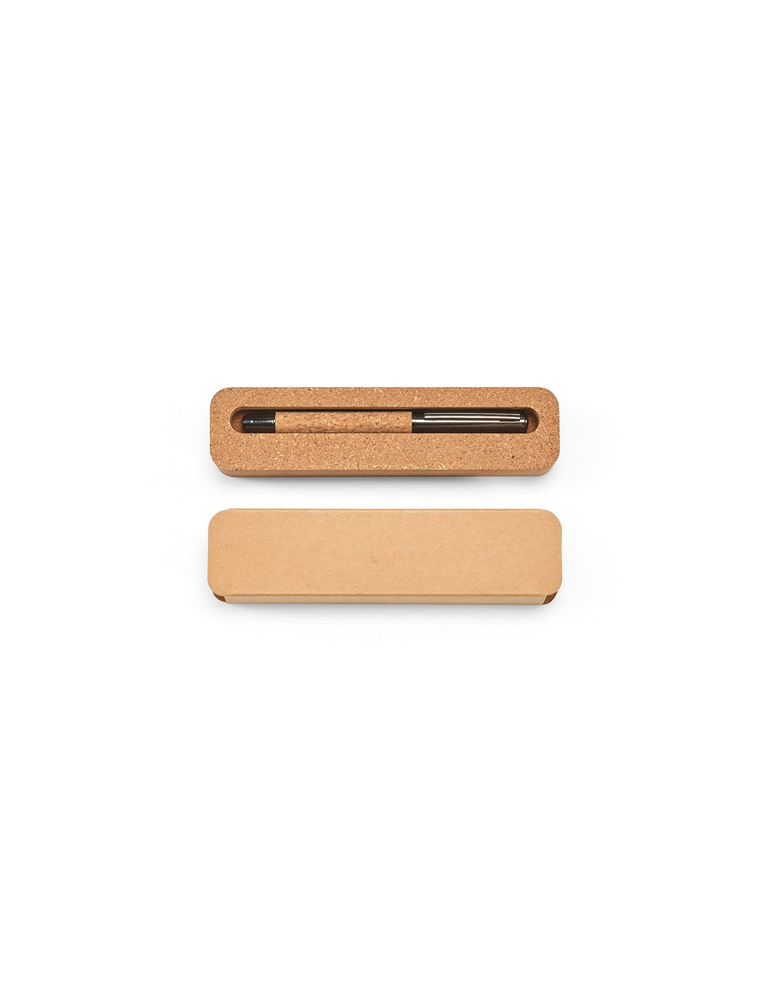Penna a sfera a pulsante con fusto in cartone riciclato del latte (70%) e parti in PLA (in mais biodegradabile al 100%). Inchiostro blu.