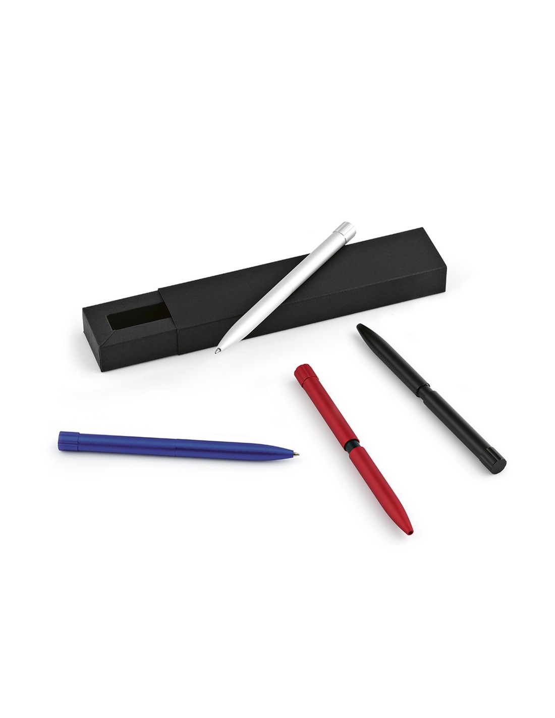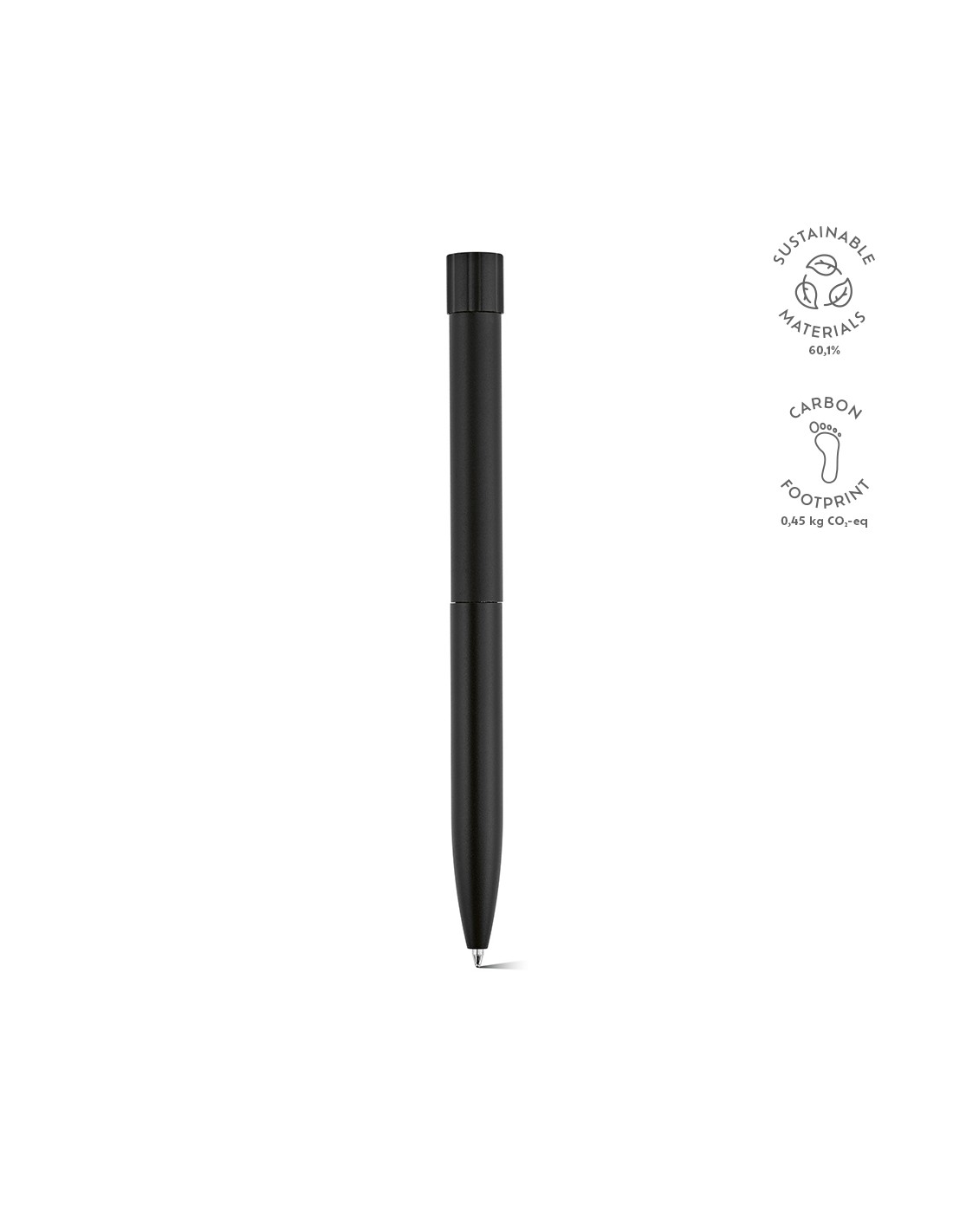 Penna a sfera in plastica riciclata con fusto gommato e impugnatura in TPR. Colore dell'inchiostro: Nero. Capacità di scrittura: 1000 metri. Dimensione del pennino: 1,0 mm.