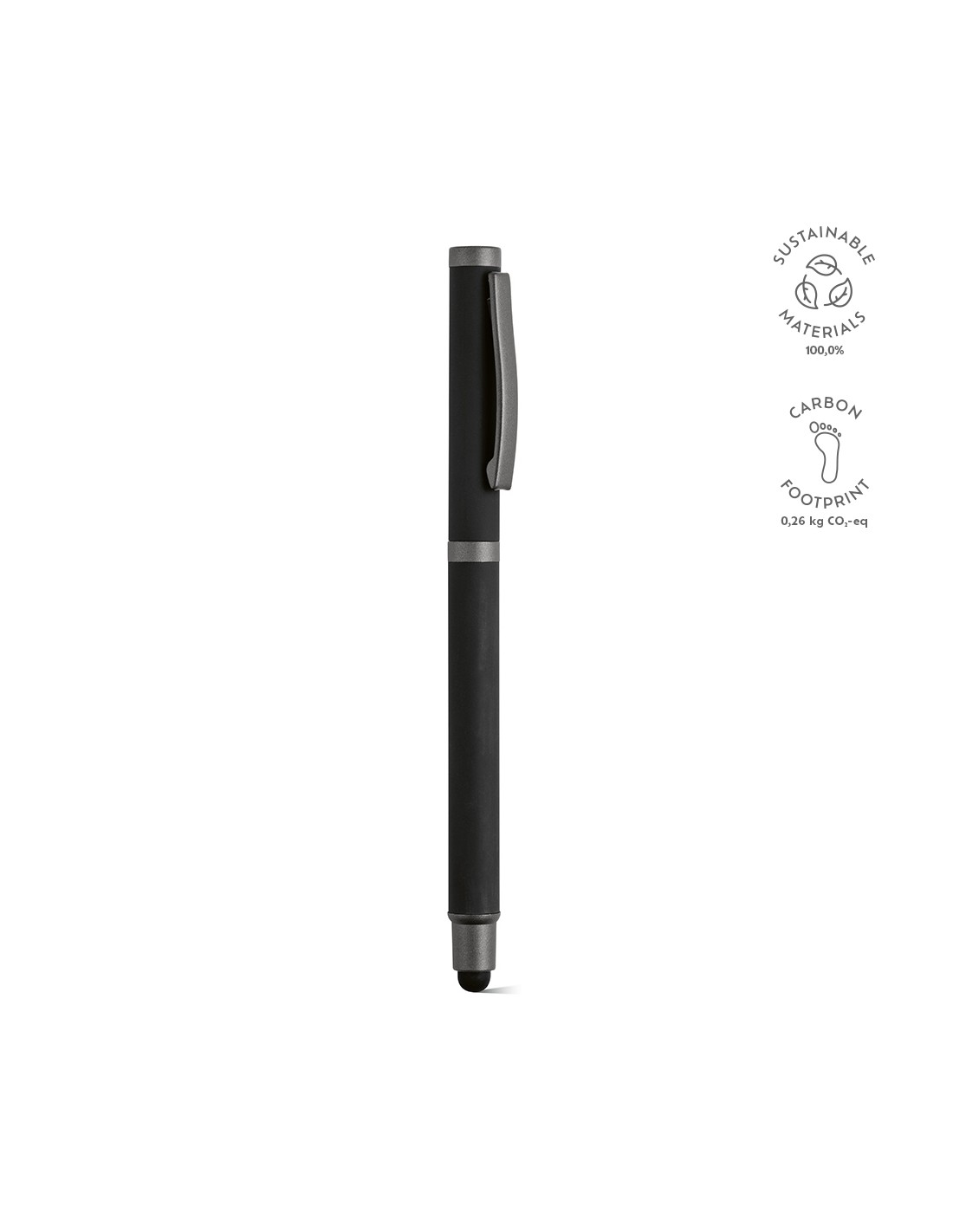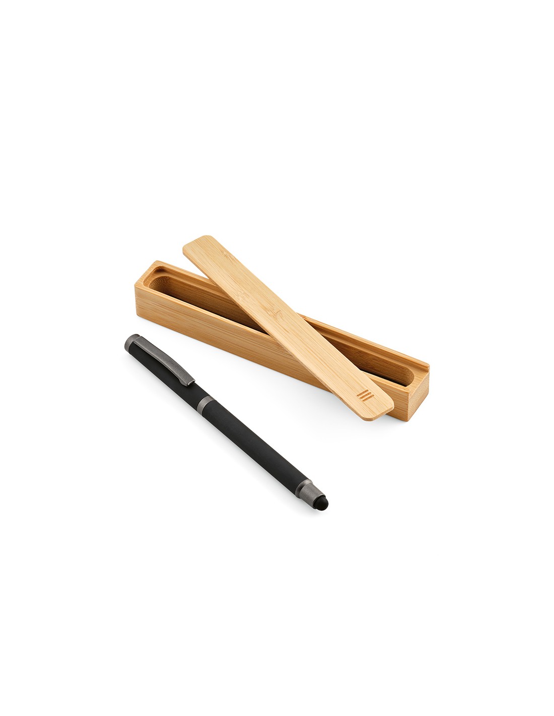 La penna a sfera Blanca ha il fusto superiore realizzato in plastica riciclata con rivestimento verniciato a spruzzo colorato e accessori in bambù su entrambi i lati. La parte inferiore del fusto è realizzata in alluminio riciclato con rivestimento verniciato a spruzzo colorato. Colore...