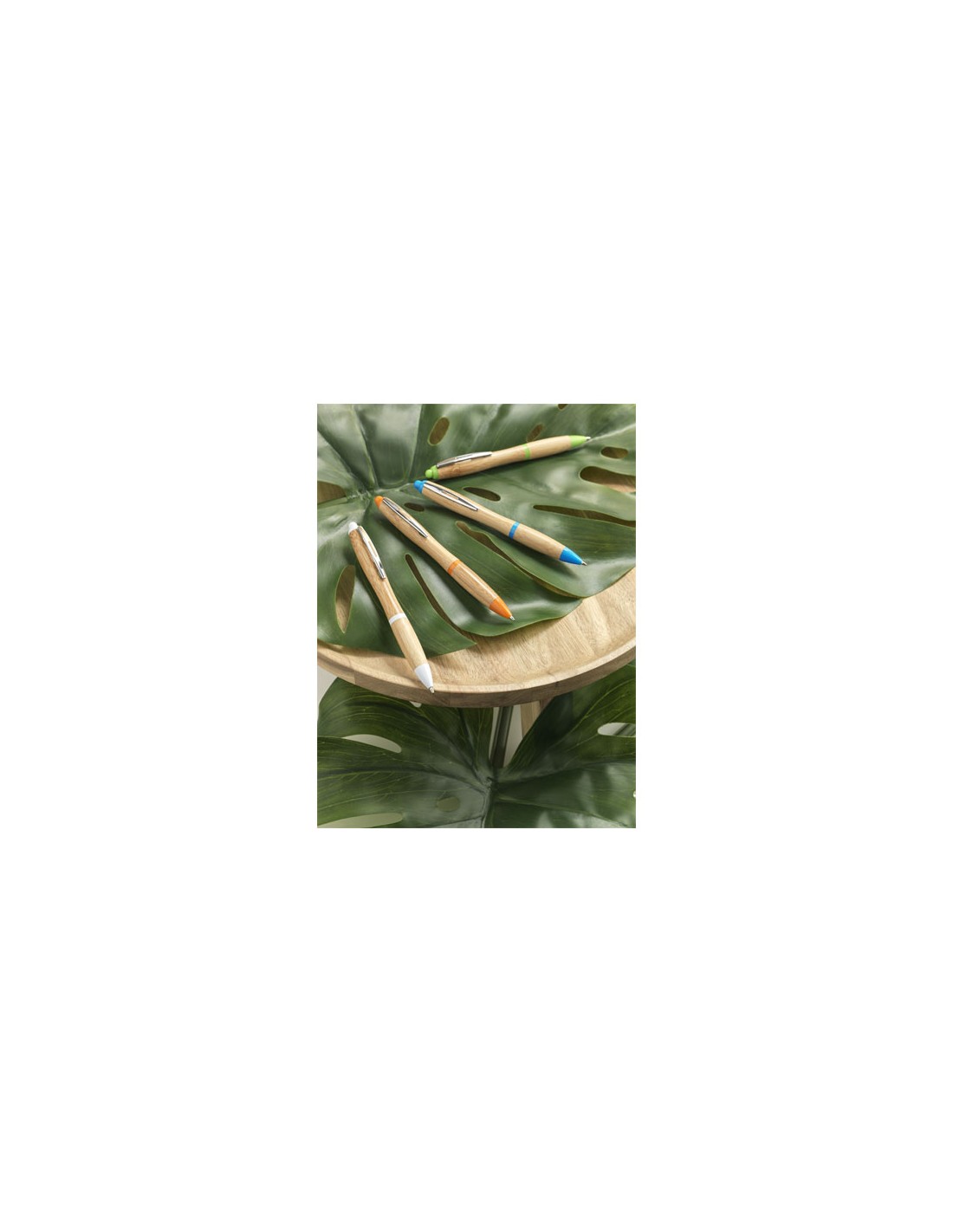 Penna a sfera con meccanismo a scatto, con serbatoio in bambù, accentuato da una clip cromata e finiture in plastica ABS. Il colore del bambù può variare.