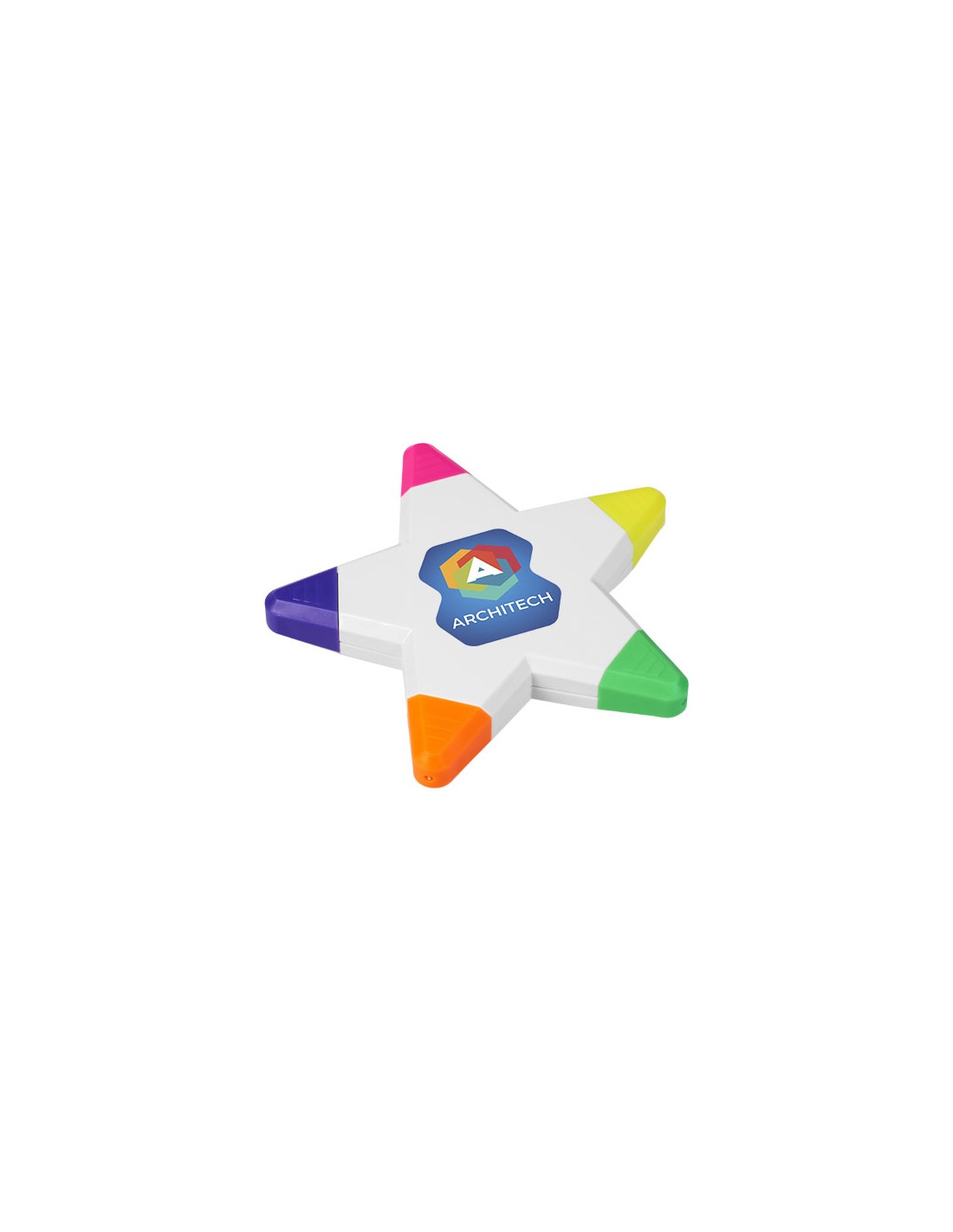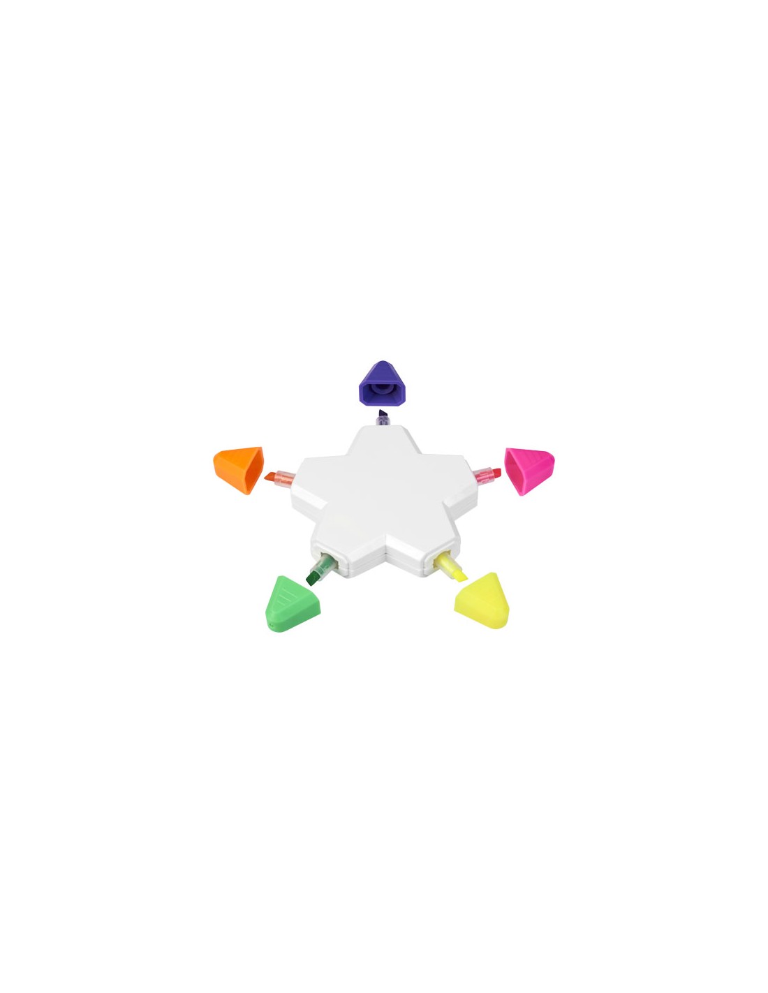 Stella con cinque vivaci evidenziatori colorati. Attenzione! Non adatto a bambini di età inferiore ai tre anni. Piccole parti. Pericolo di soffocamento.