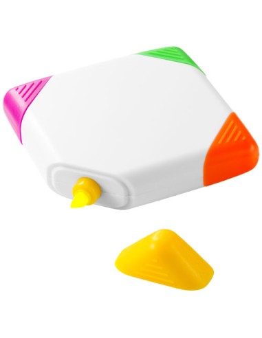 Evidenziatore quadrato con 4 punte a scalpello: gialla, arancione, rosa e verde. Attenzione! Non adatto a bambini di età inferiore ai tre anni. Piccole parti. Pericolo di soffocamento.