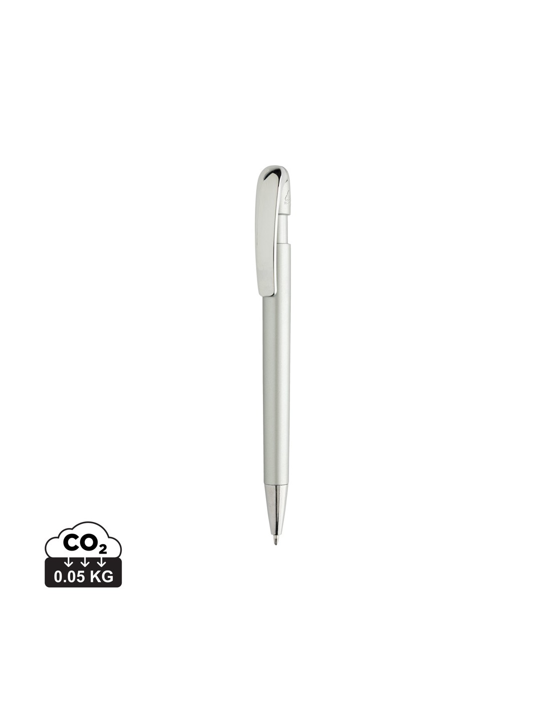 Penna a sfera con splendida clip in metallo cromato. Può scrivere circa 1200 m. Refill con inchiostro blu Dokumental® tedesco con sfera TC per una scrittura ultra scorrevole. Realizzata con il 55% di ABS riciclato e certificata RCS.