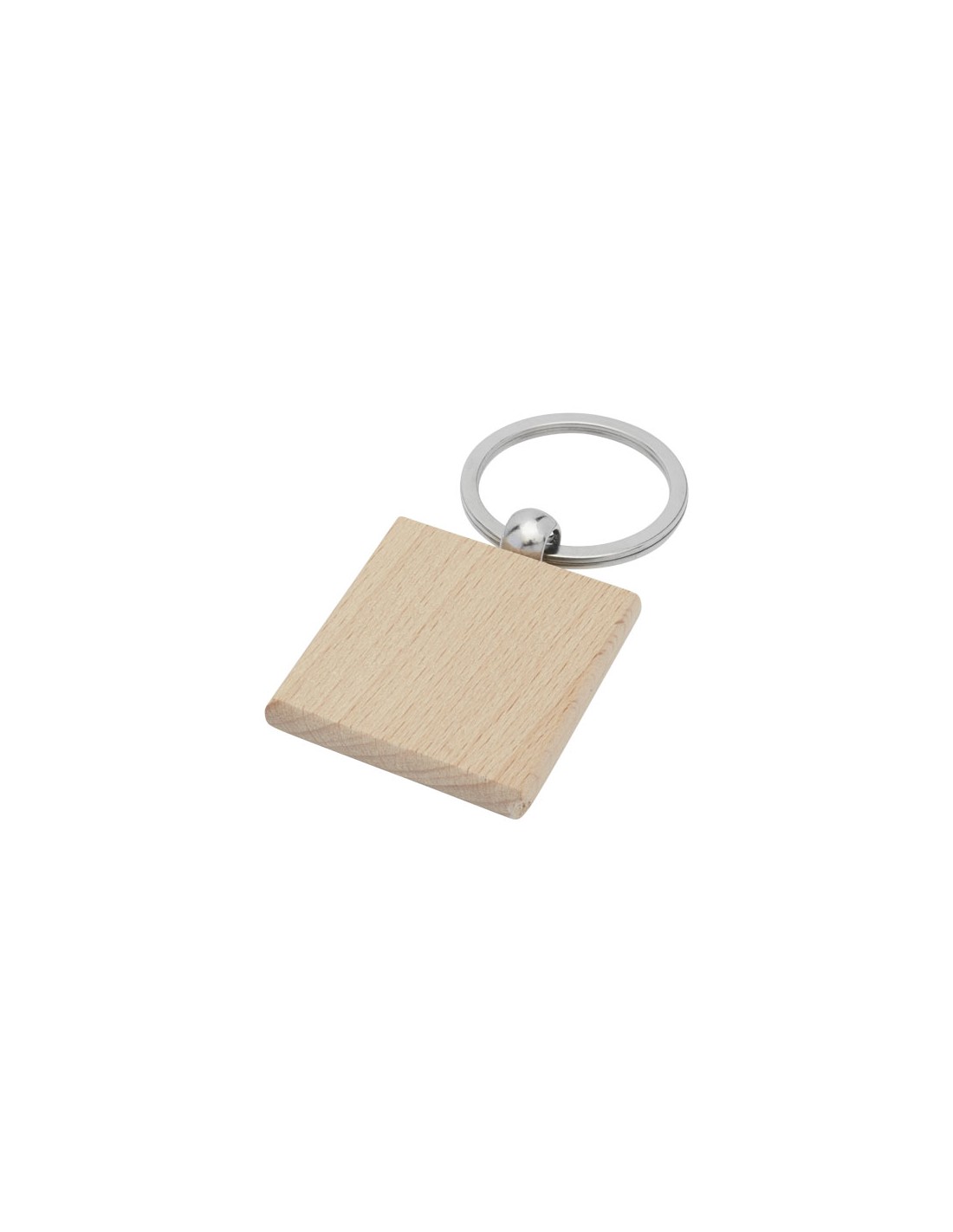 Portachiavi quadrato in legno di faggio, confezionato in involucro di carta Kraft marrone riciclata. Dimensioni del portachiavi 4 x 4 cm. Adatto per incisione laser.