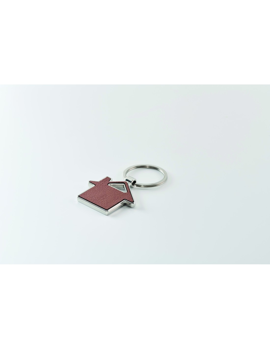 Portachiavi in metallo a forma di casa con inserto in pelle PU riciclata.