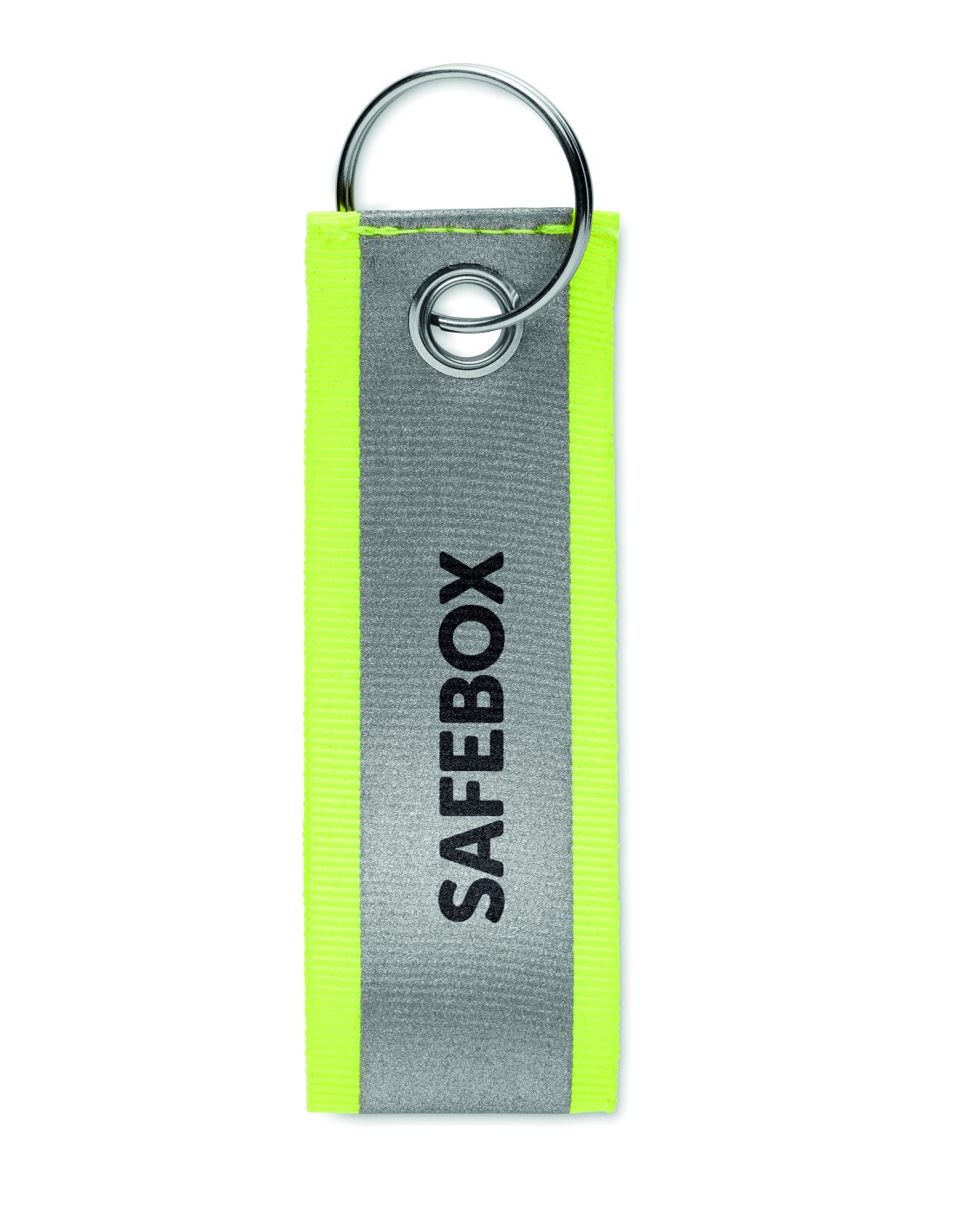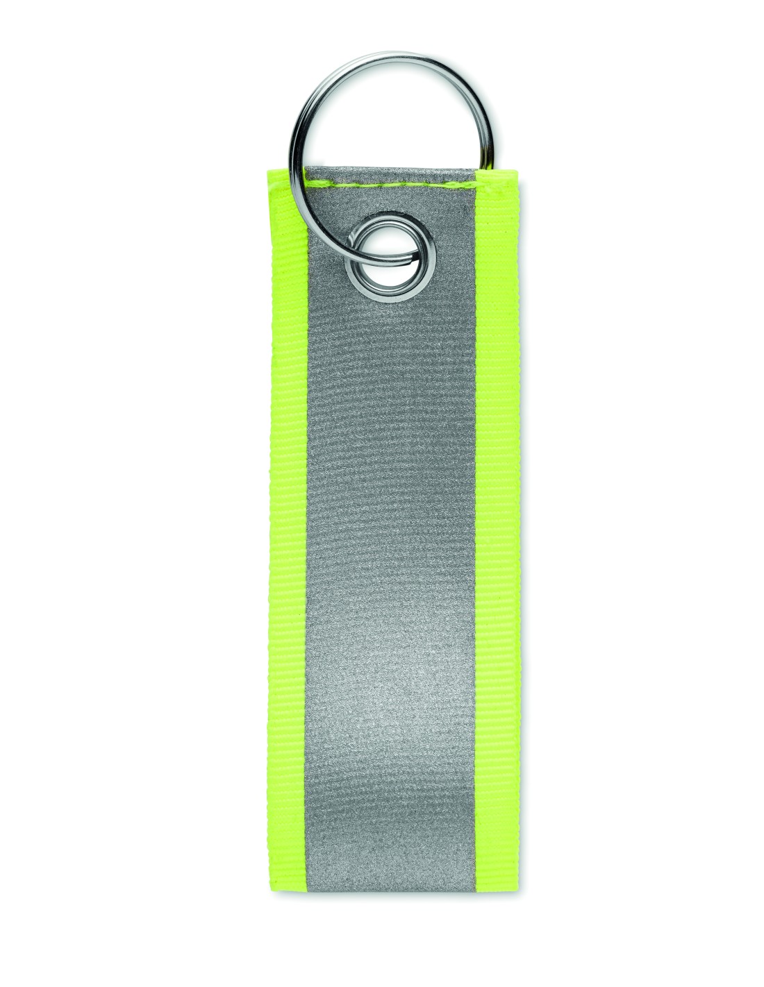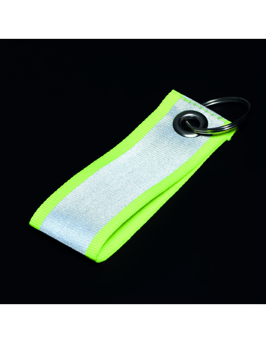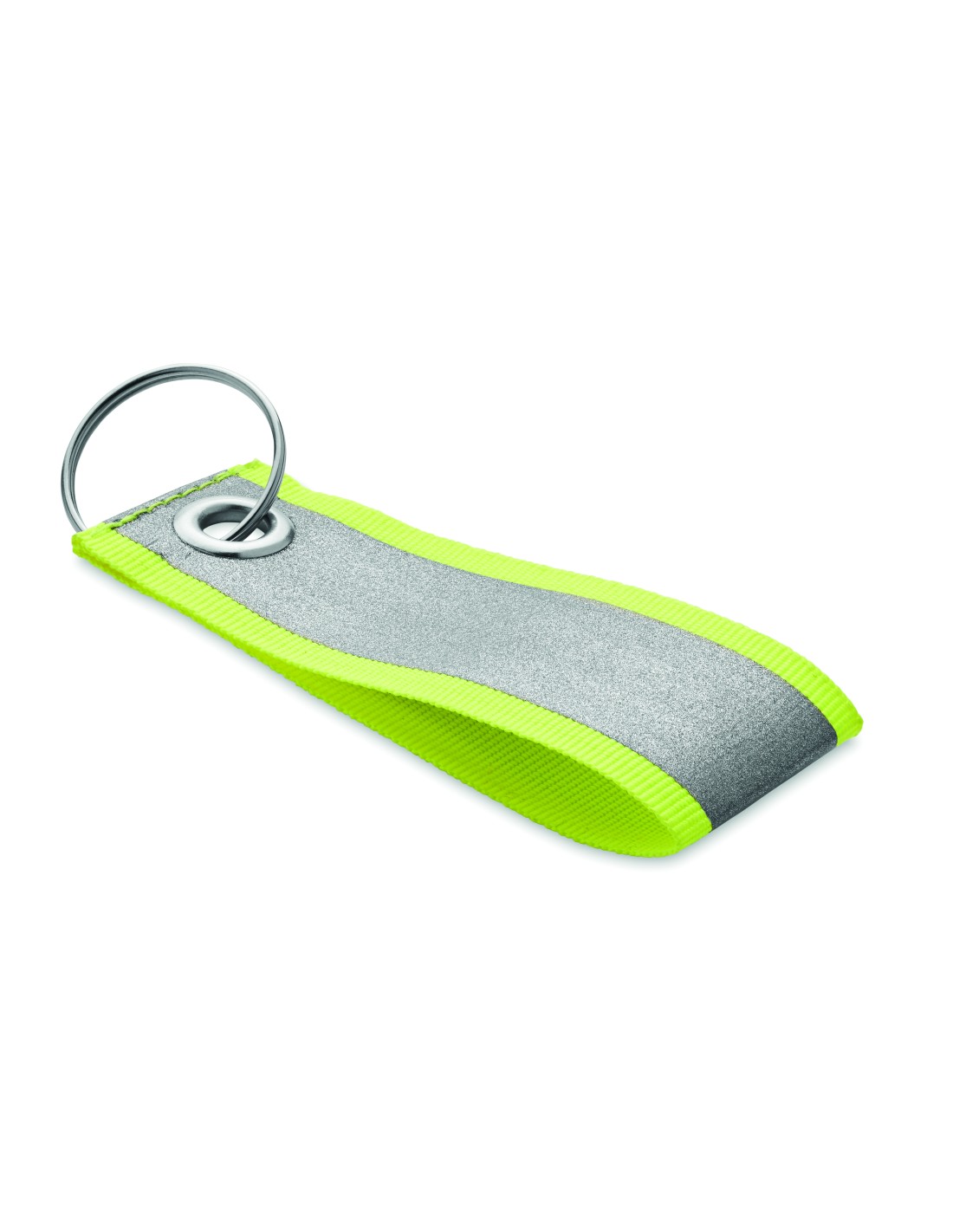 Portachiavi a forma di cuore di colore bianco con anello in metallo. L'anello di metallo ha un profilo piatto ideale per le spedizioni.