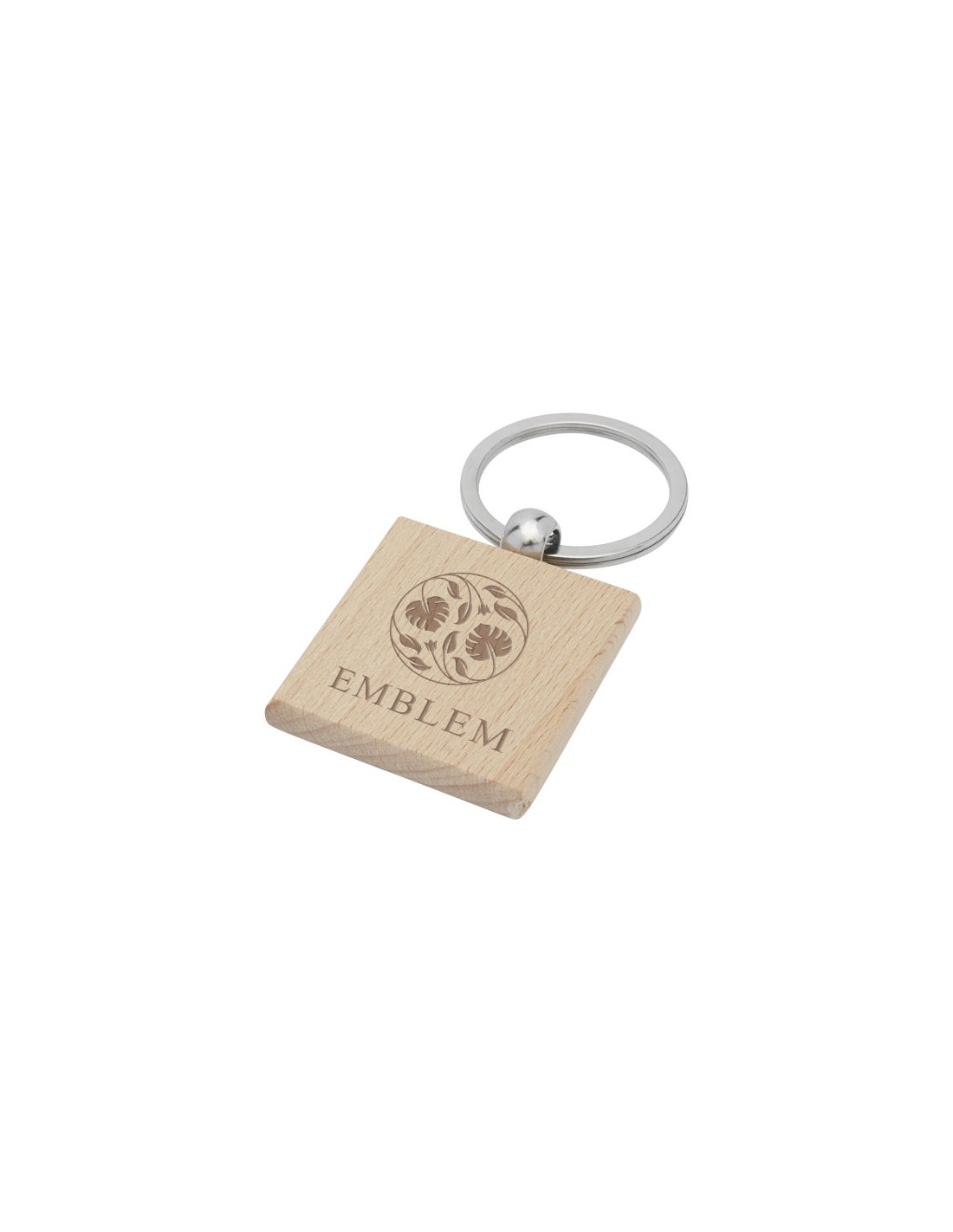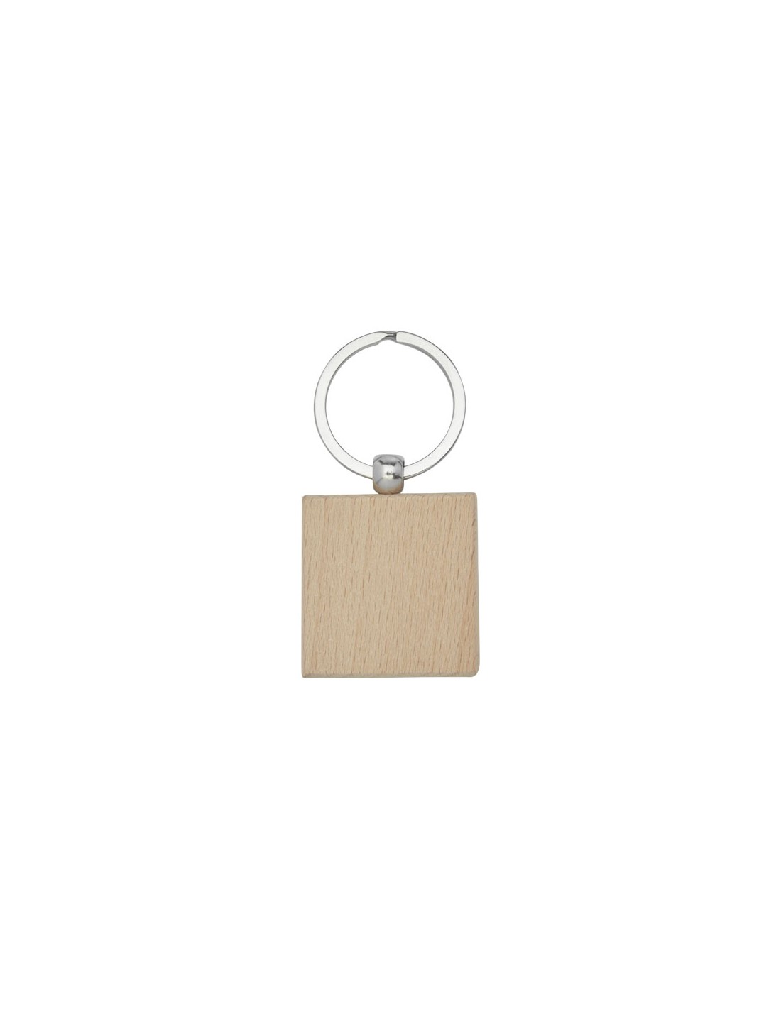 Portachiavi quadrato in legno di faggio, confezionato in involucro di carta Kraft marrone riciclata. Dimensioni del portachiavi 4 x 4 cm. Adatto per incisione laser.