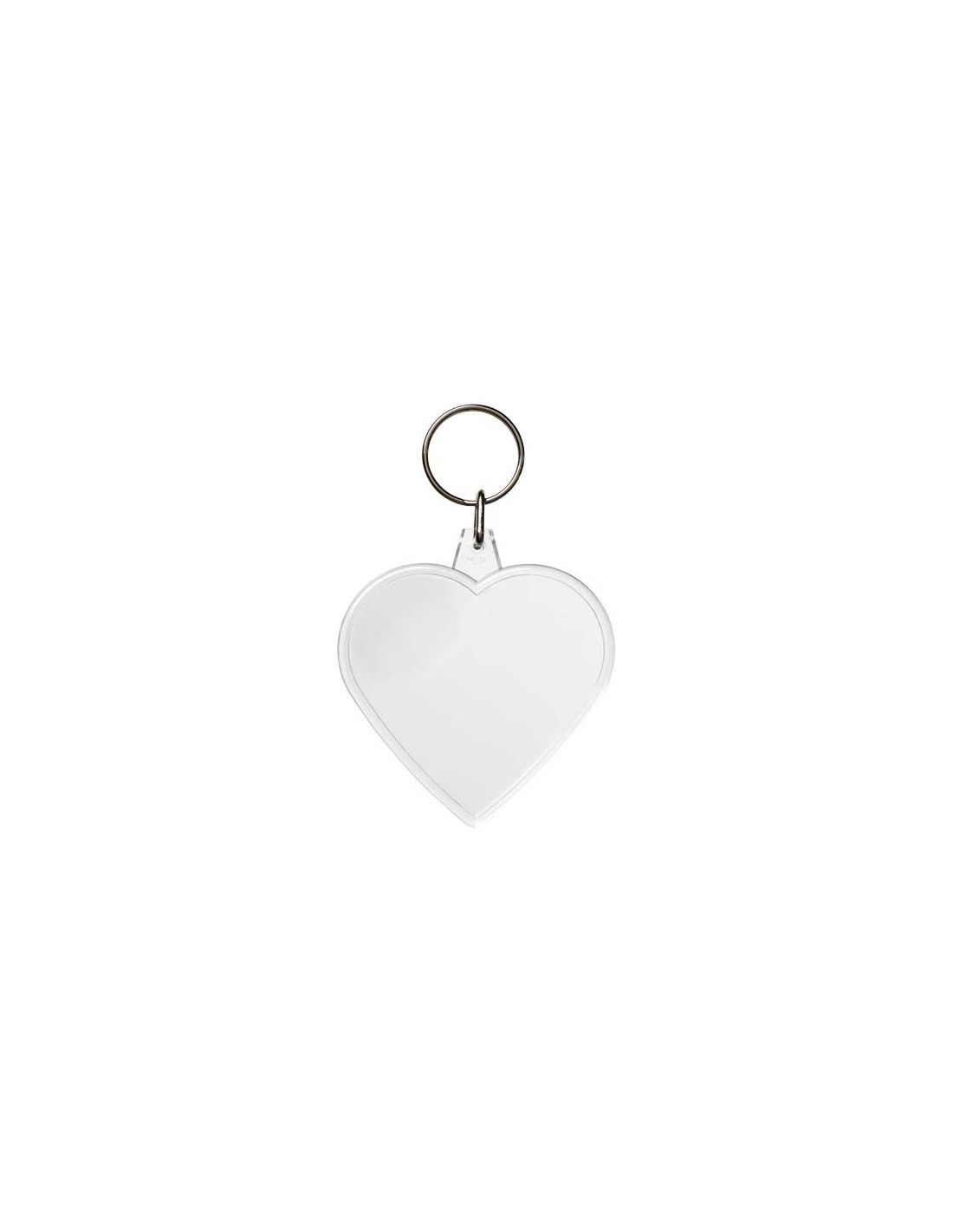 Portachiavi a forma di cuore trasparente, con anello in metallo diviso. L'anello di metallo a loop ha un profilo piatto ideale per le spedizioni. Dimensioni dell'inserto stampato: 5,8 cm x 5,0 cm.