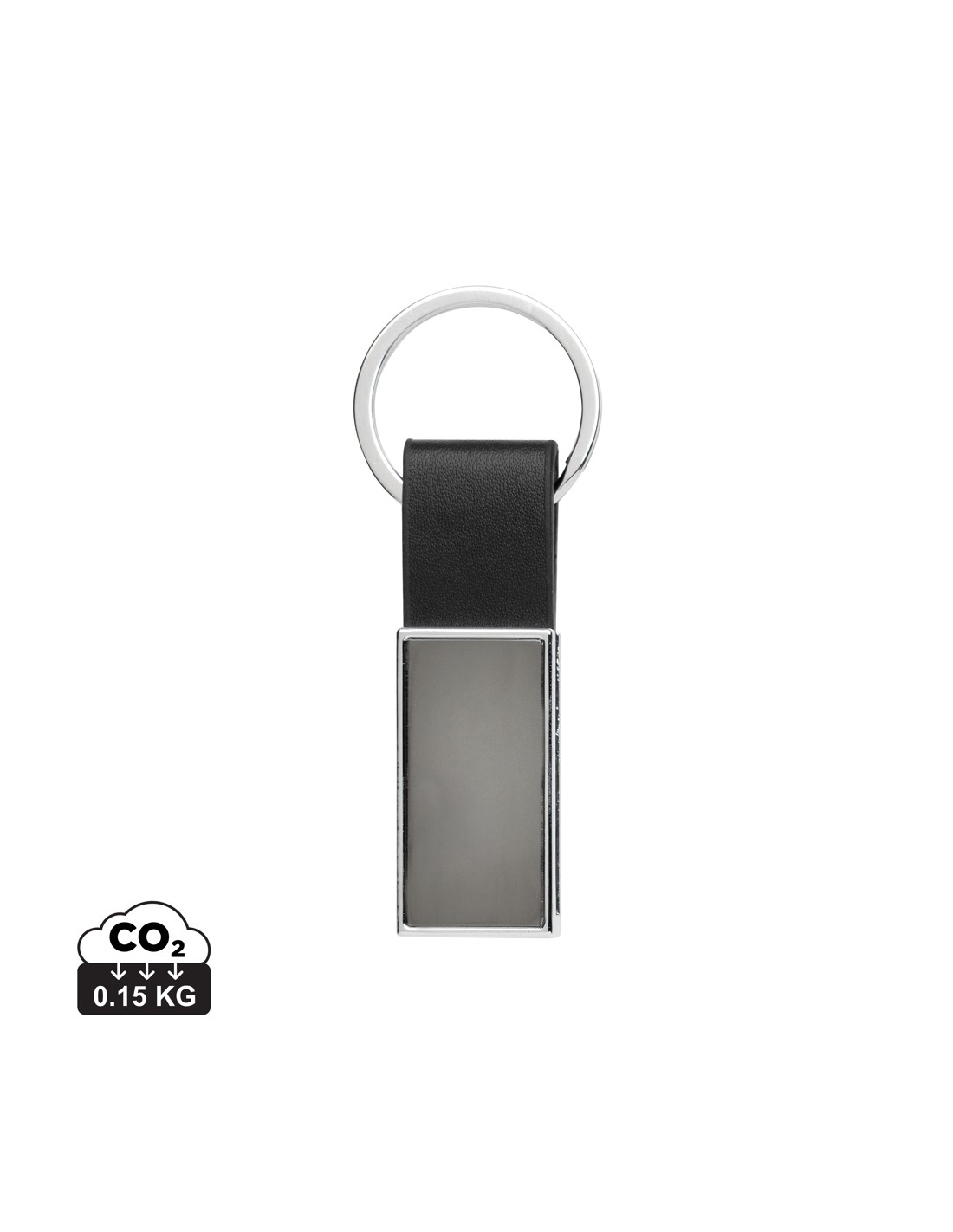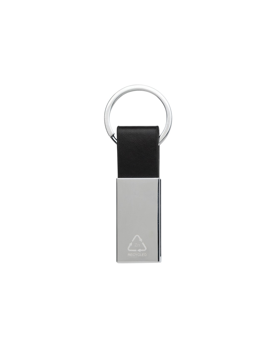 Portachiavi a forma di cerchio di colore bianco con anello in metallo. L'anello di metallo ha un profilo piatto ideale per le spedizioni.