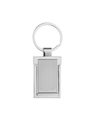 Lussuoso portachiavi con supporto per telefono realizzato in lega di zinco riciclato RCS. Contenuto totale riciclato: 86% in base al peso totale dell'articolo. La certificazione RCS garantisce una filiera completamente certificata dei materiali riciclati. Confezionato in un sacchetto di carta.