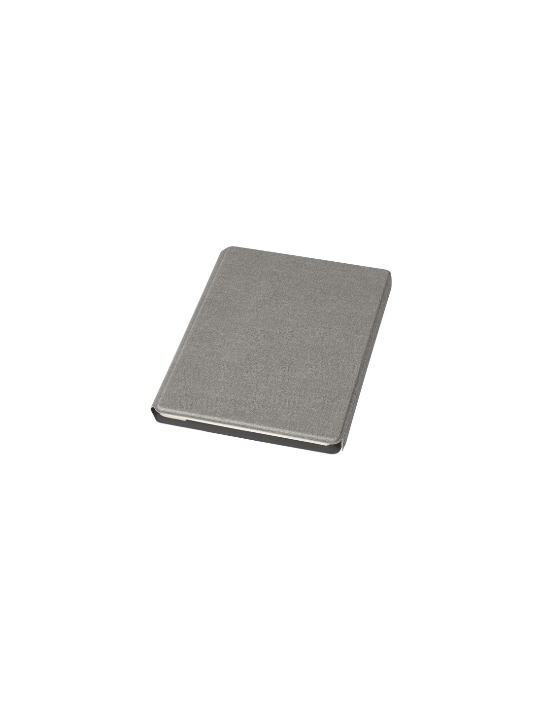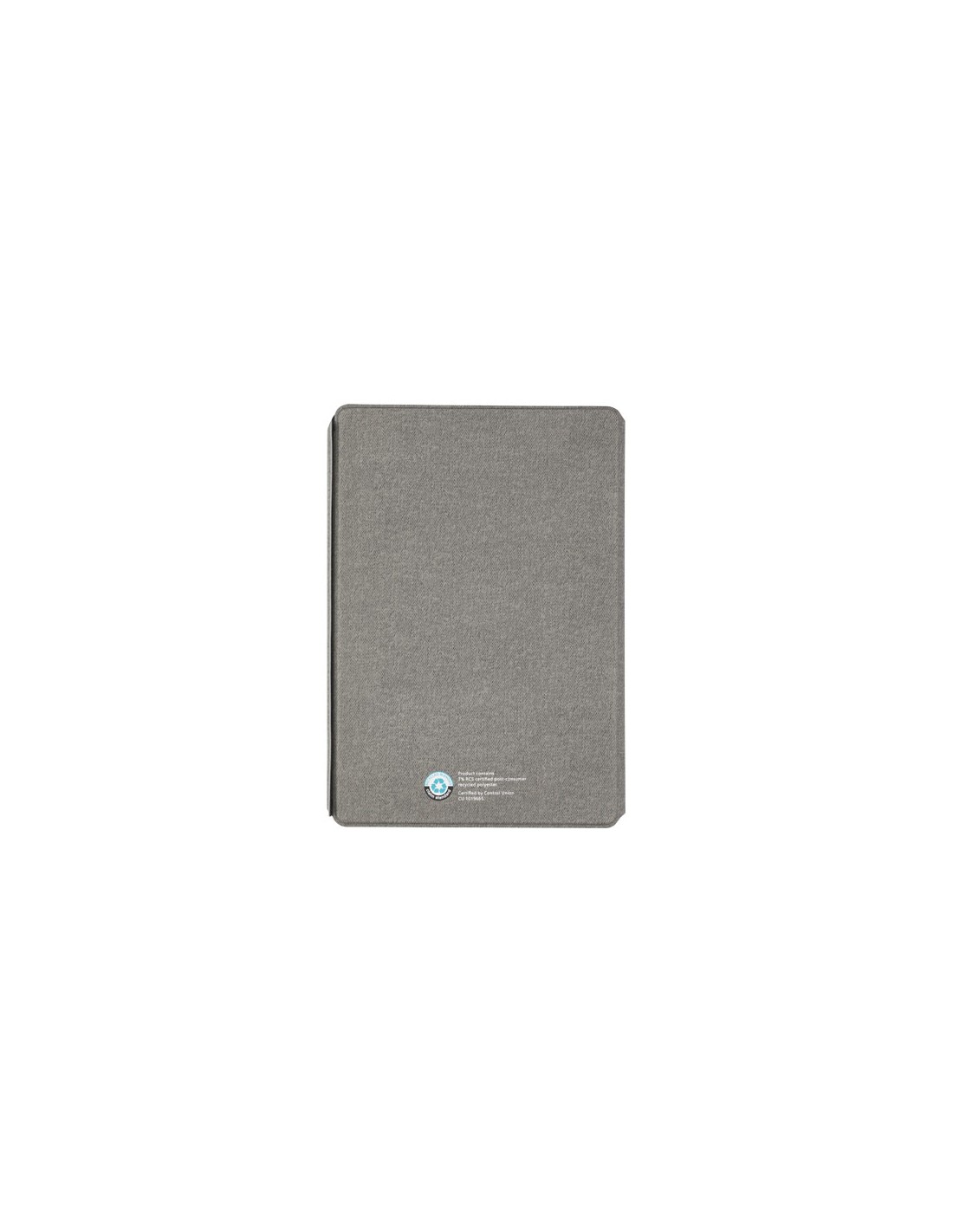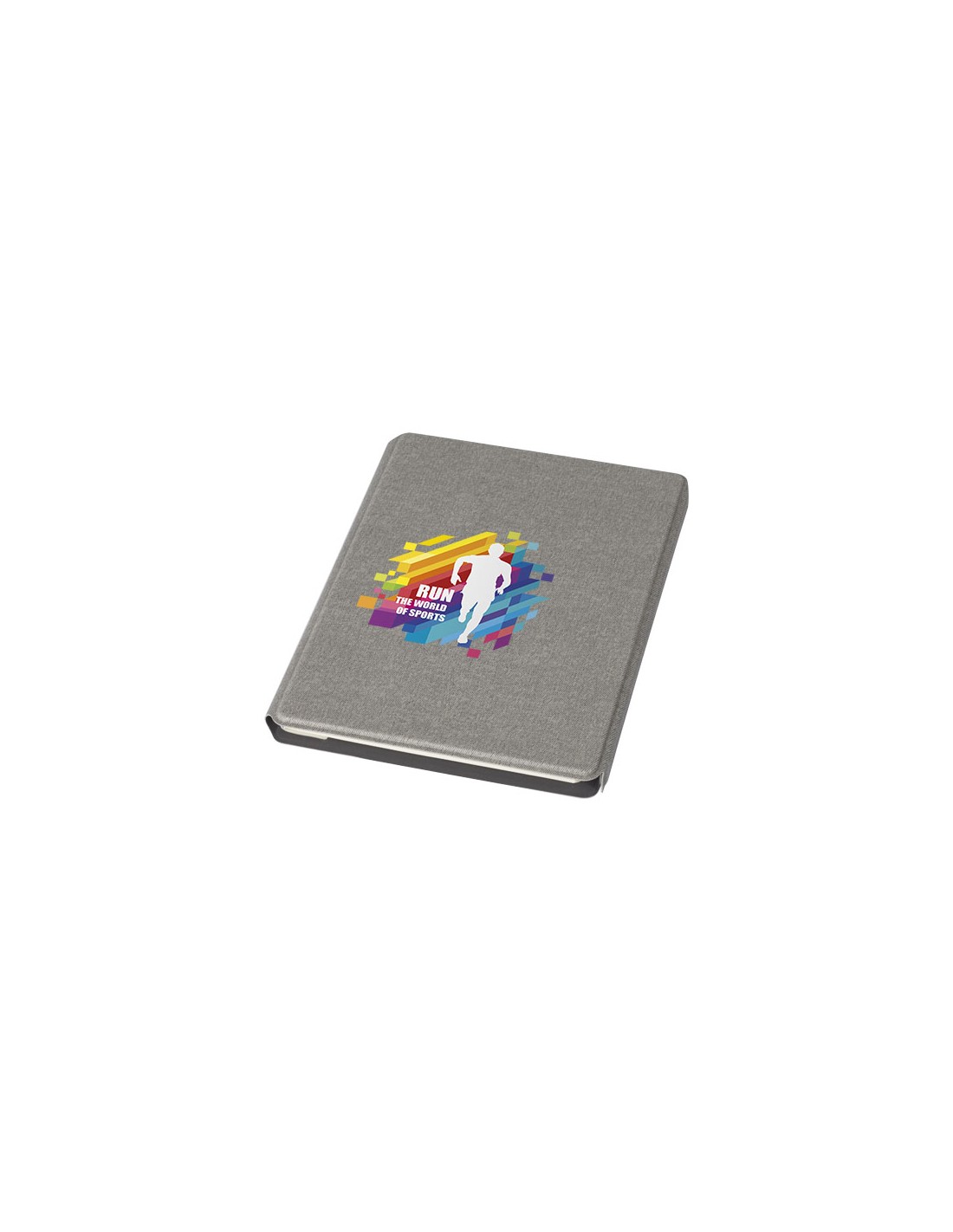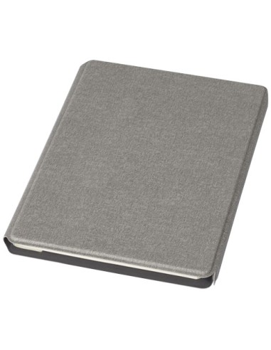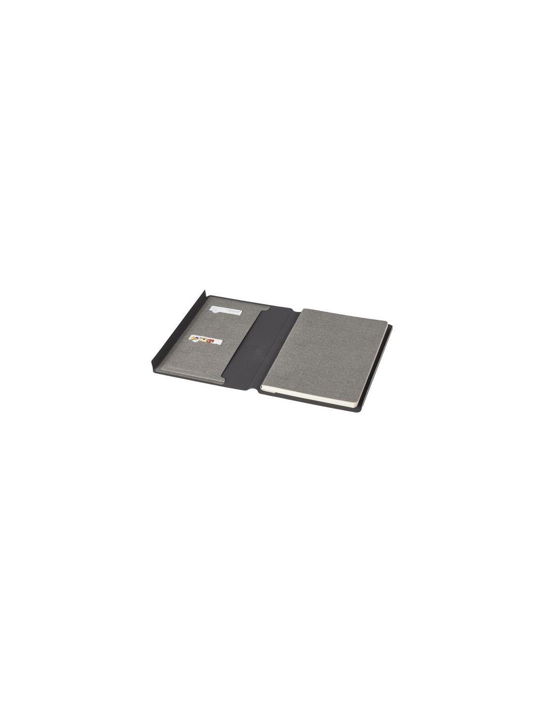 Cartella formato A4 in RPET 300D bicolore. Contiene scomparti interni e passante per penna. Include un blocco note foderato da 20 fogli.