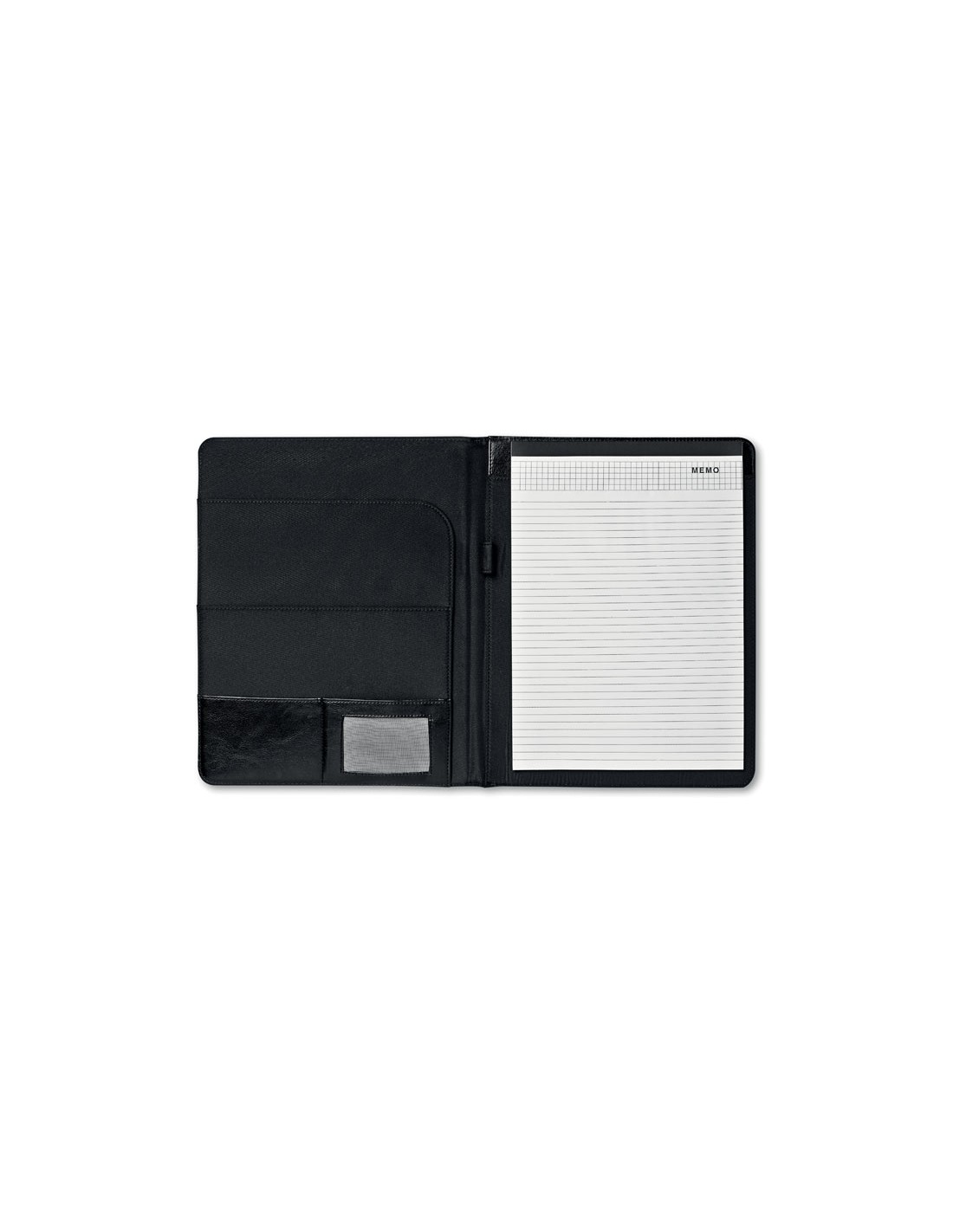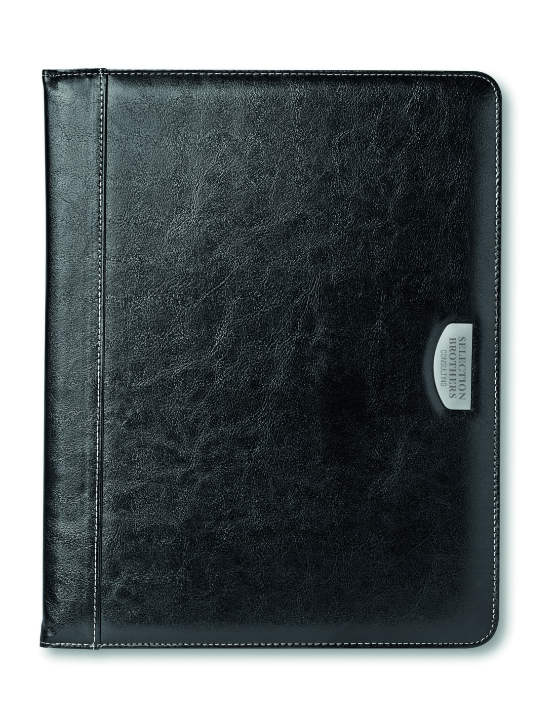 Portadocumenti A4 con placca in metallo e blocnotes da 20 fogli incluso. In PU.