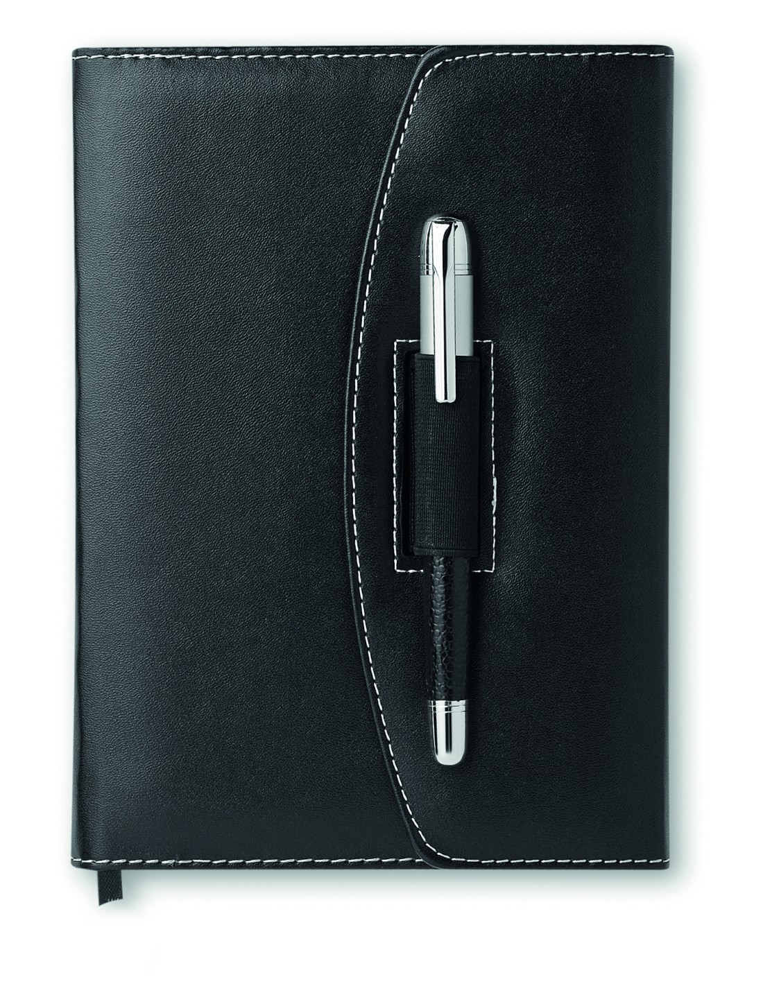Blocco A4 con copertina in pelle rigenerata. Cerniera. Blocco note da 25 fogli, 4 scomparti interni. Porta penna.