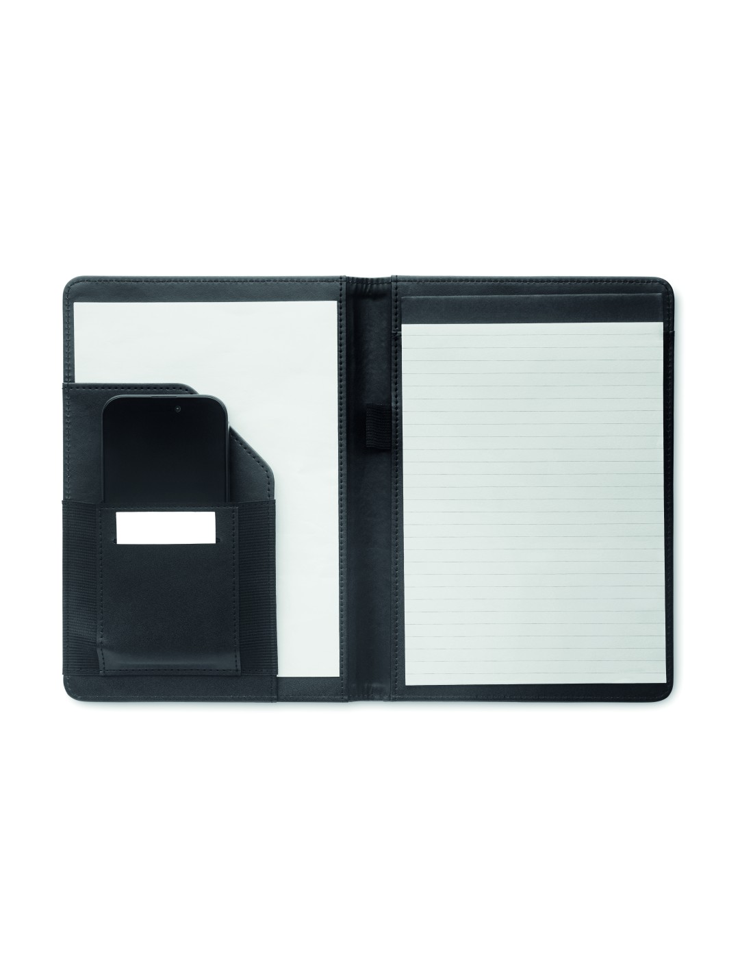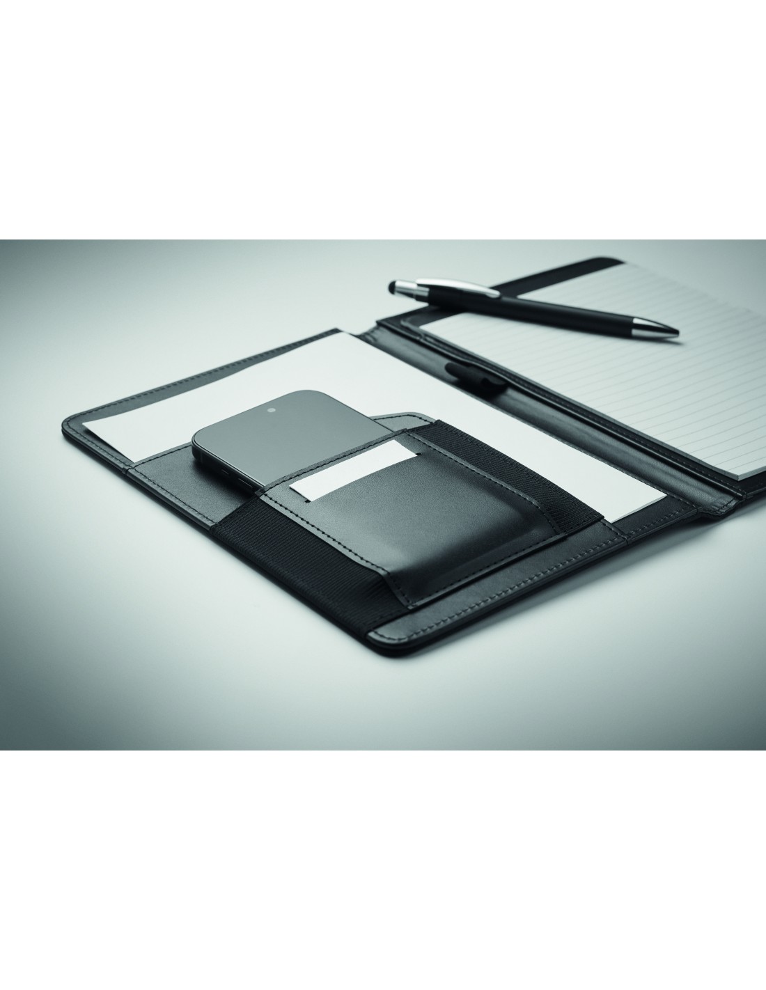 Porta documenti in sughero con notebook A5 ricaricabile. Rilegato con custodia. 192 pagine a righe in carta riciclata (96 fogli). Penna e portapenne abbinati. 2 portacarte. Chiusura elastica.