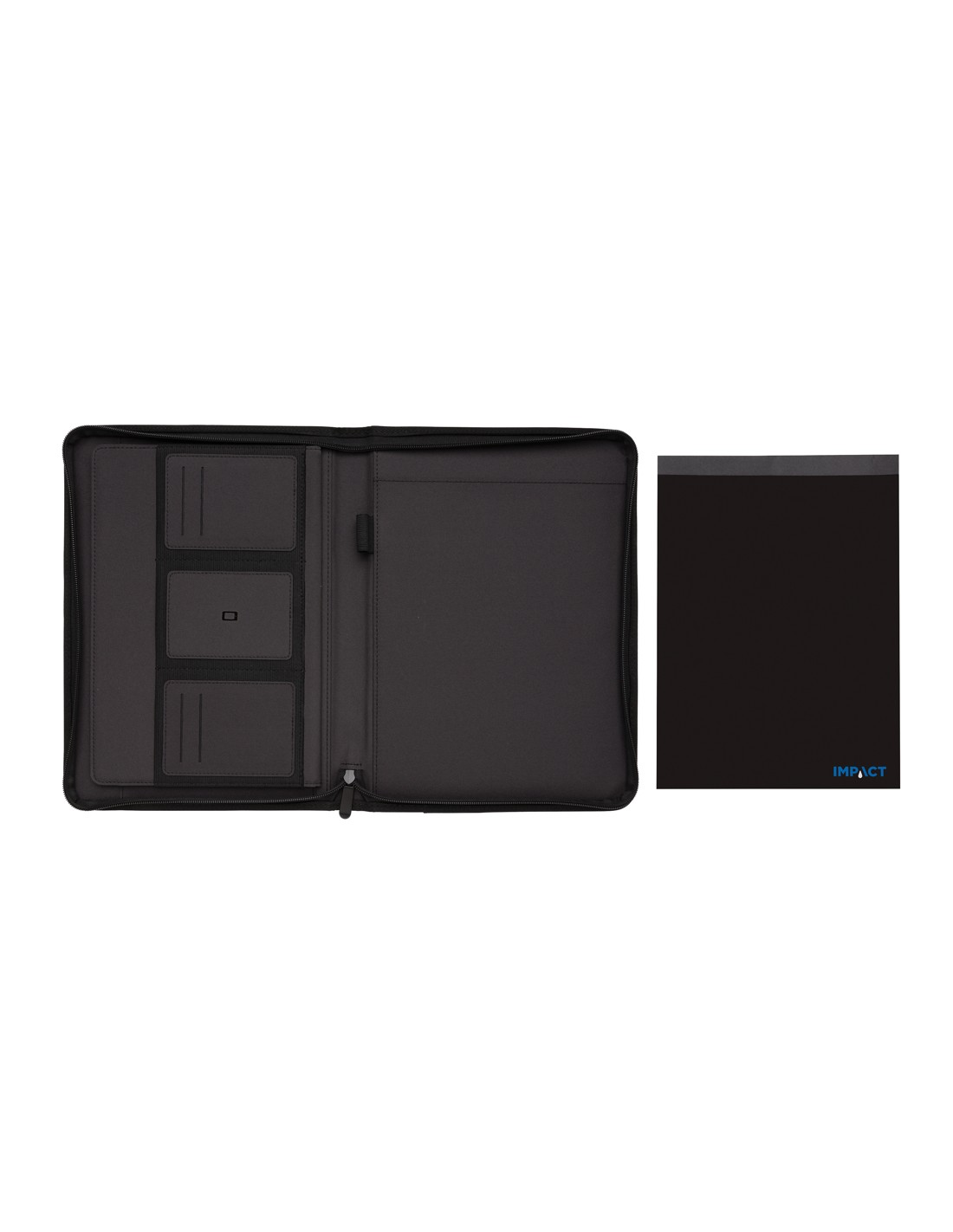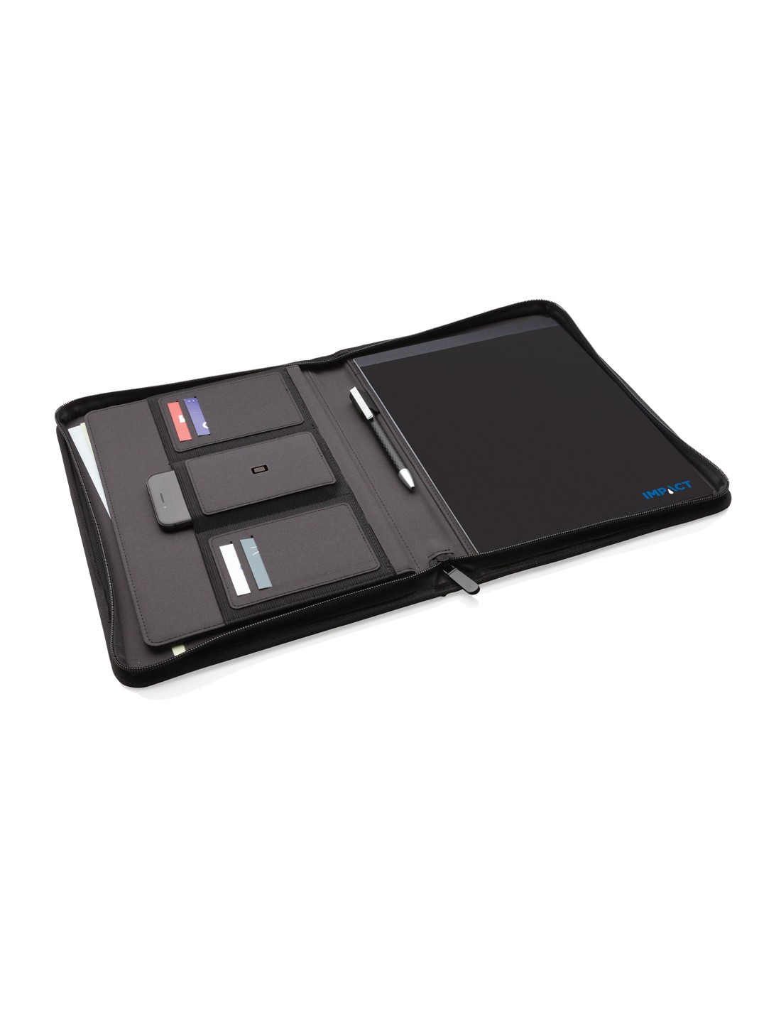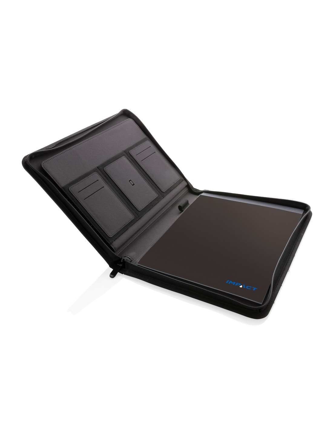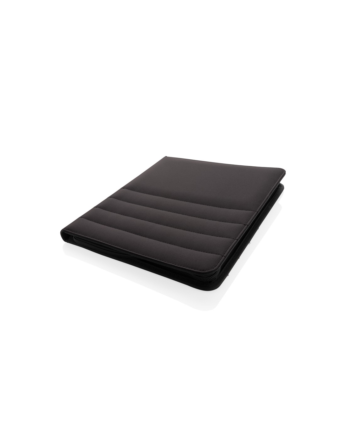 Portfolio A5 in RPET con dettagli in ecopelle. Quaderno A5 sostituibile con copertina rigida in sughero. Rilegato con custodia. 128 pagine a righe in carta riciclata (64 fogli). Porta penna. 2 portacarte e un grande scomparto. Cinturino di chiusura elastico con dettagli FSC®-certified | FSC MIX,...
