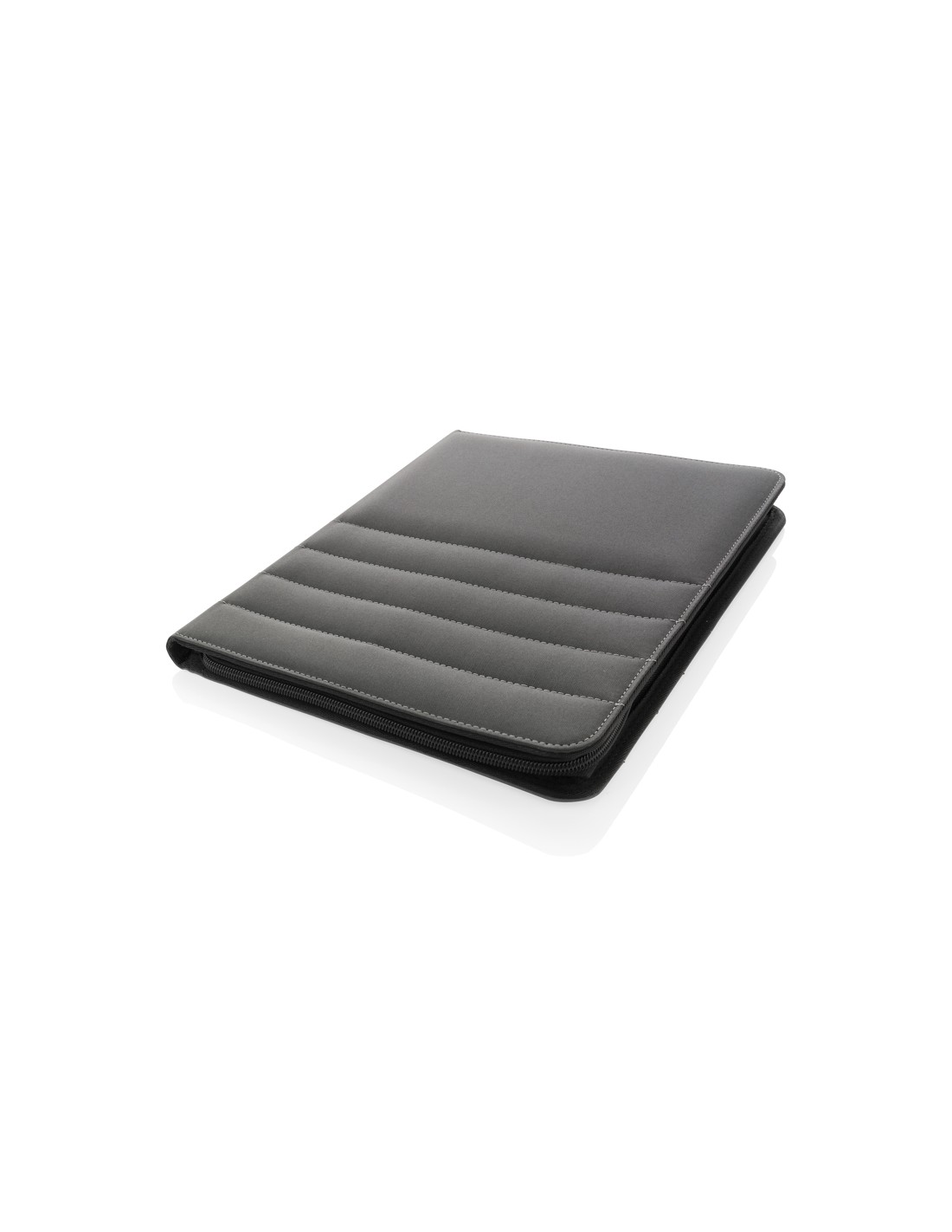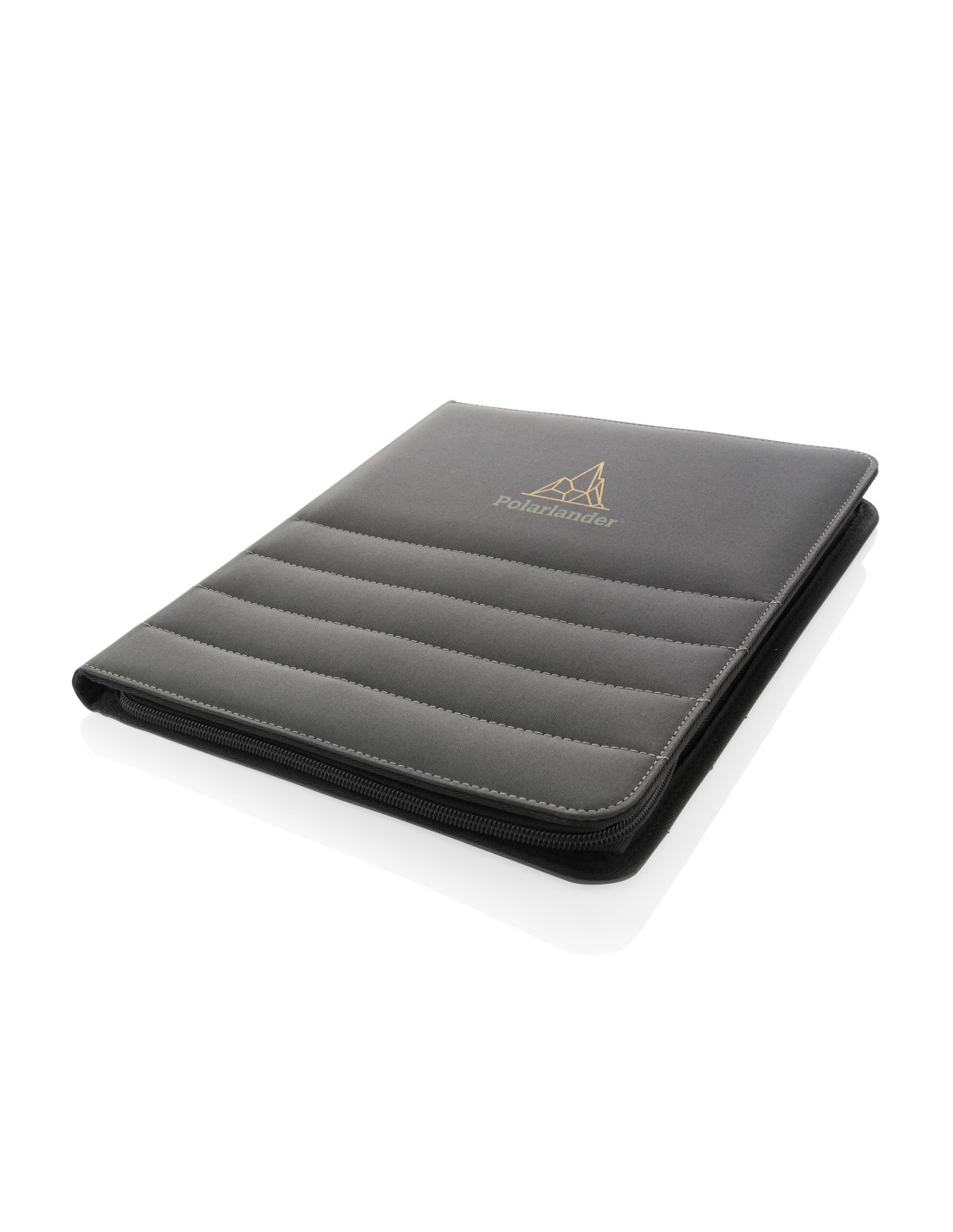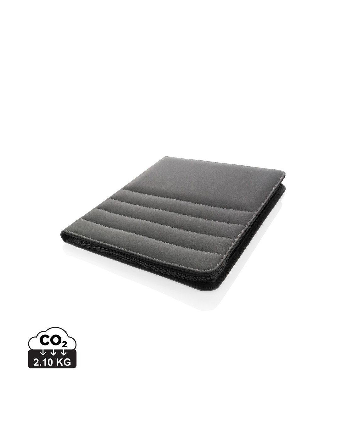 Portfolio A5 in RPET con dettagli in ecopelle. Quaderno A5 sostituibile con copertina rigida in sughero. Rilegato con custodia. 128 pagine a righe in carta riciclata (64 fogli). Porta penna. 2 portacarte e un grande scomparto. Cinturino di chiusura elastico con dettagli FSC®-certified | FSC MIX,...