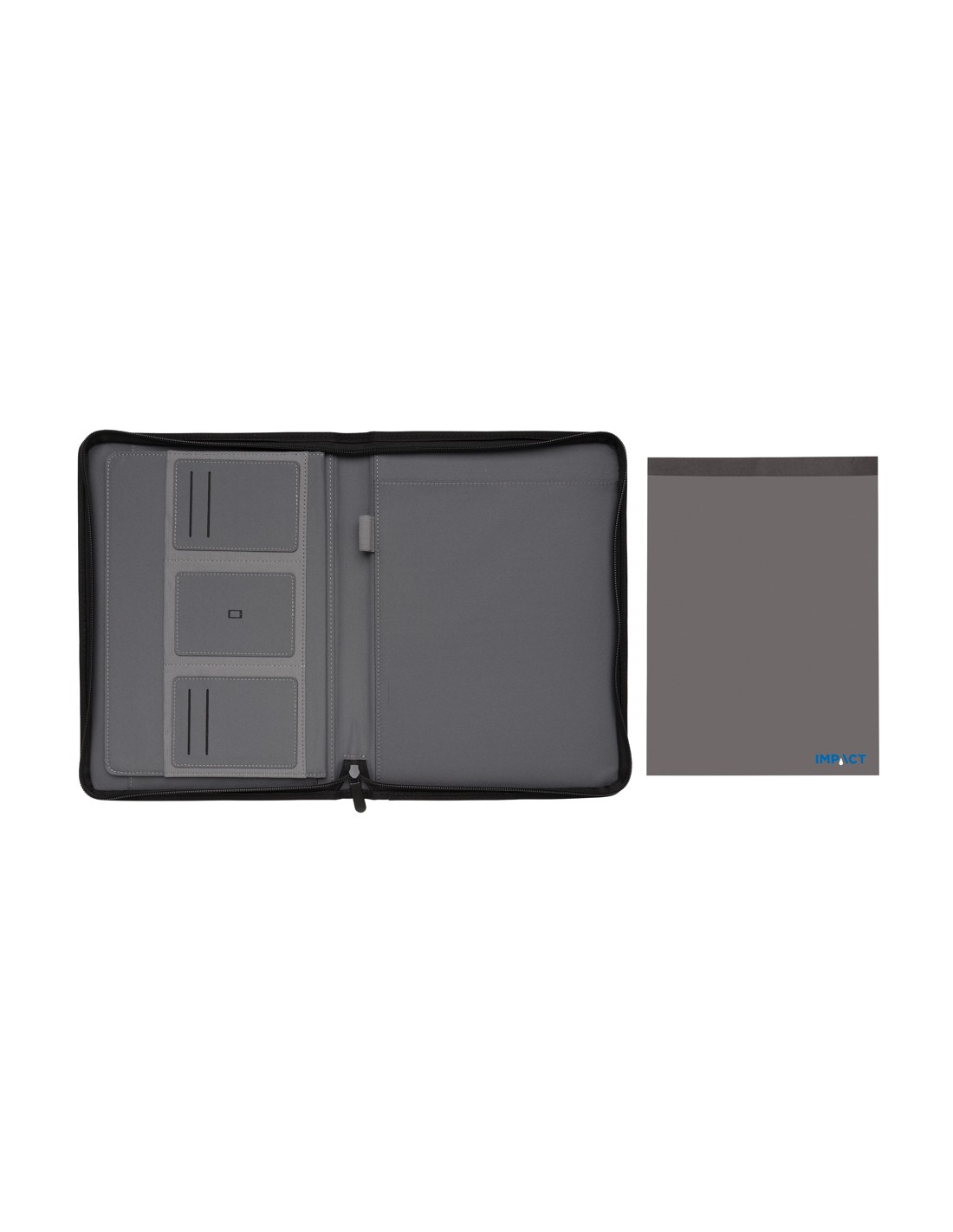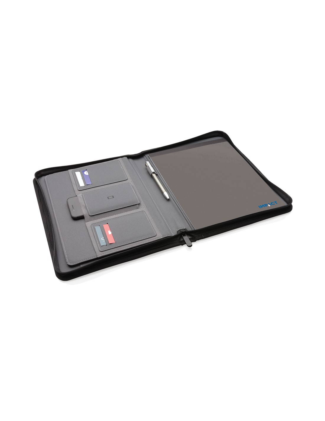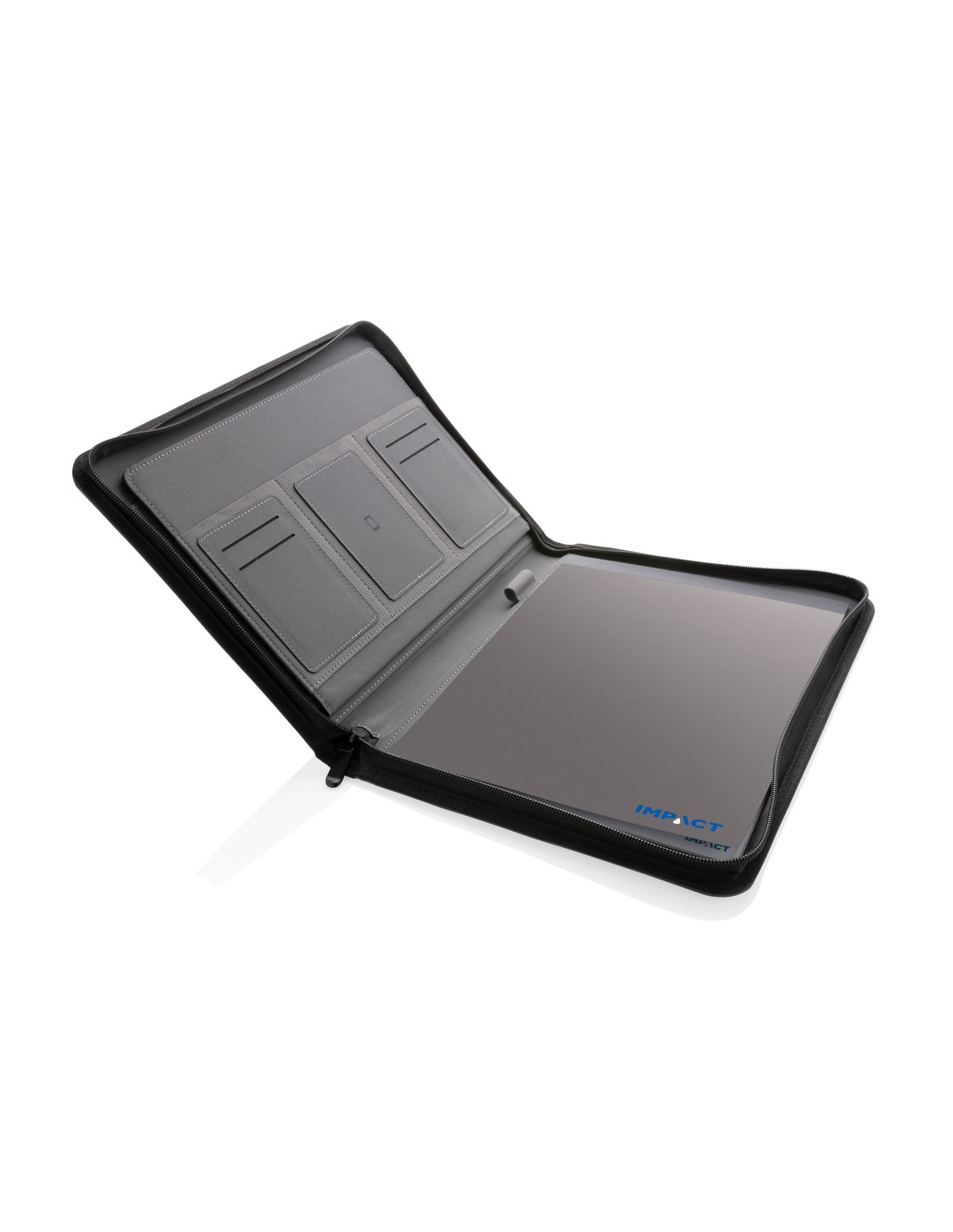Portfolio A5 in RPET con dettagli in ecopelle. Quaderno A5 sostituibile con copertina rigida in sughero. Rilegato con custodia. 128 pagine a righe in carta riciclata (64 fogli). Porta penna. 2 portacarte e un grande scomparto. Cinturino di chiusura elastico con dettagli FSC®-certified | FSC MIX,...