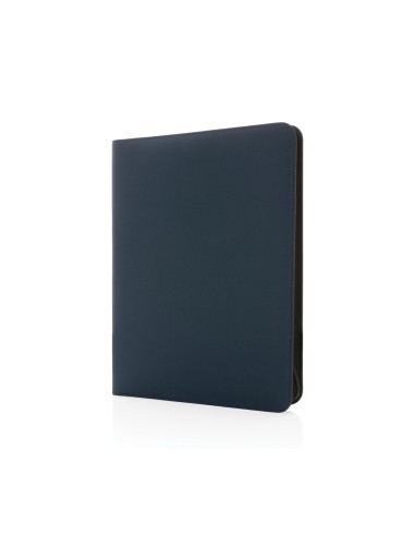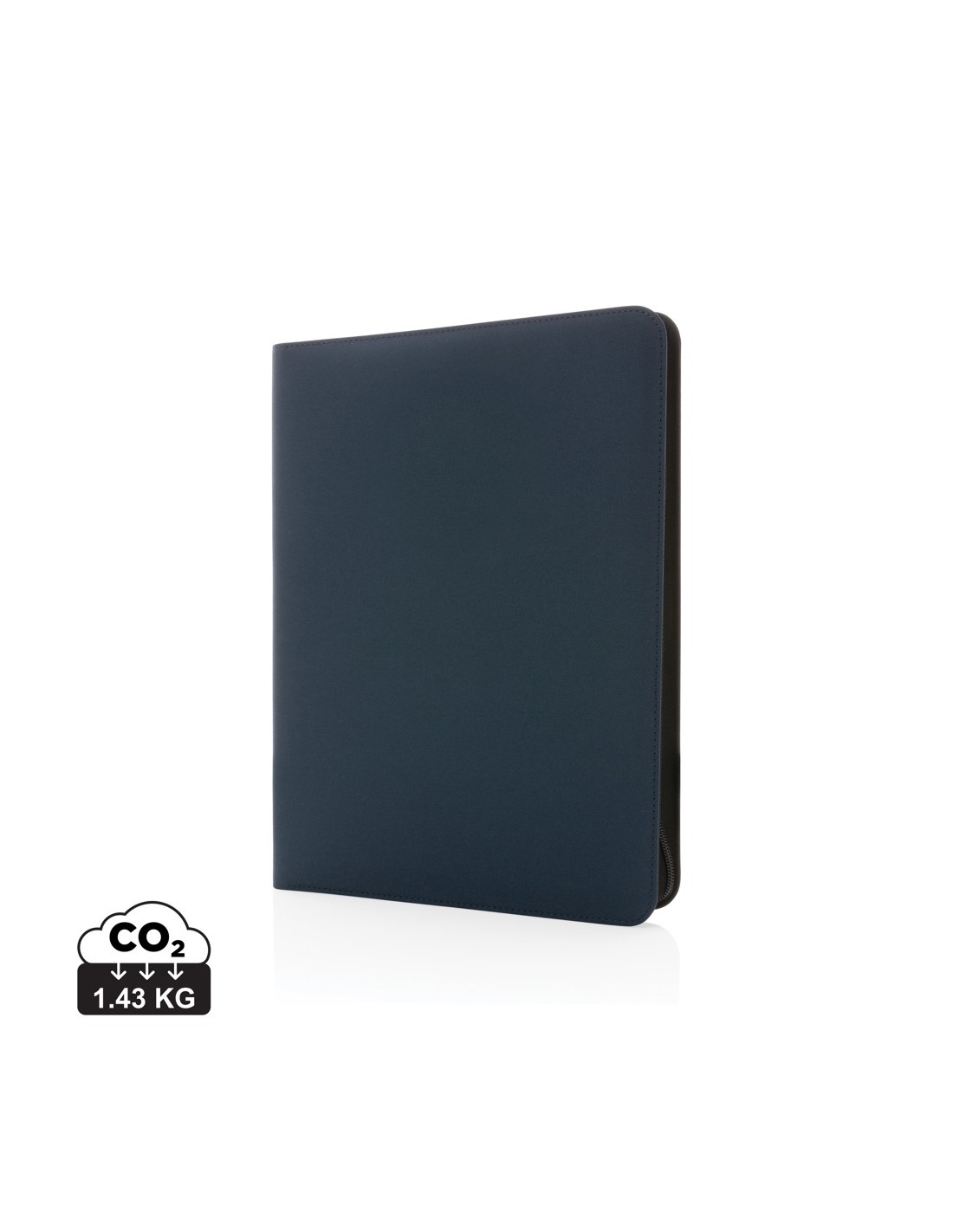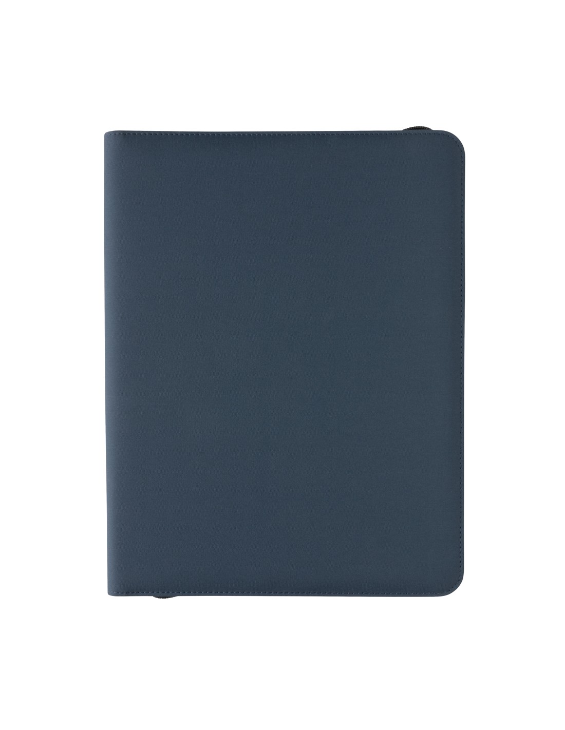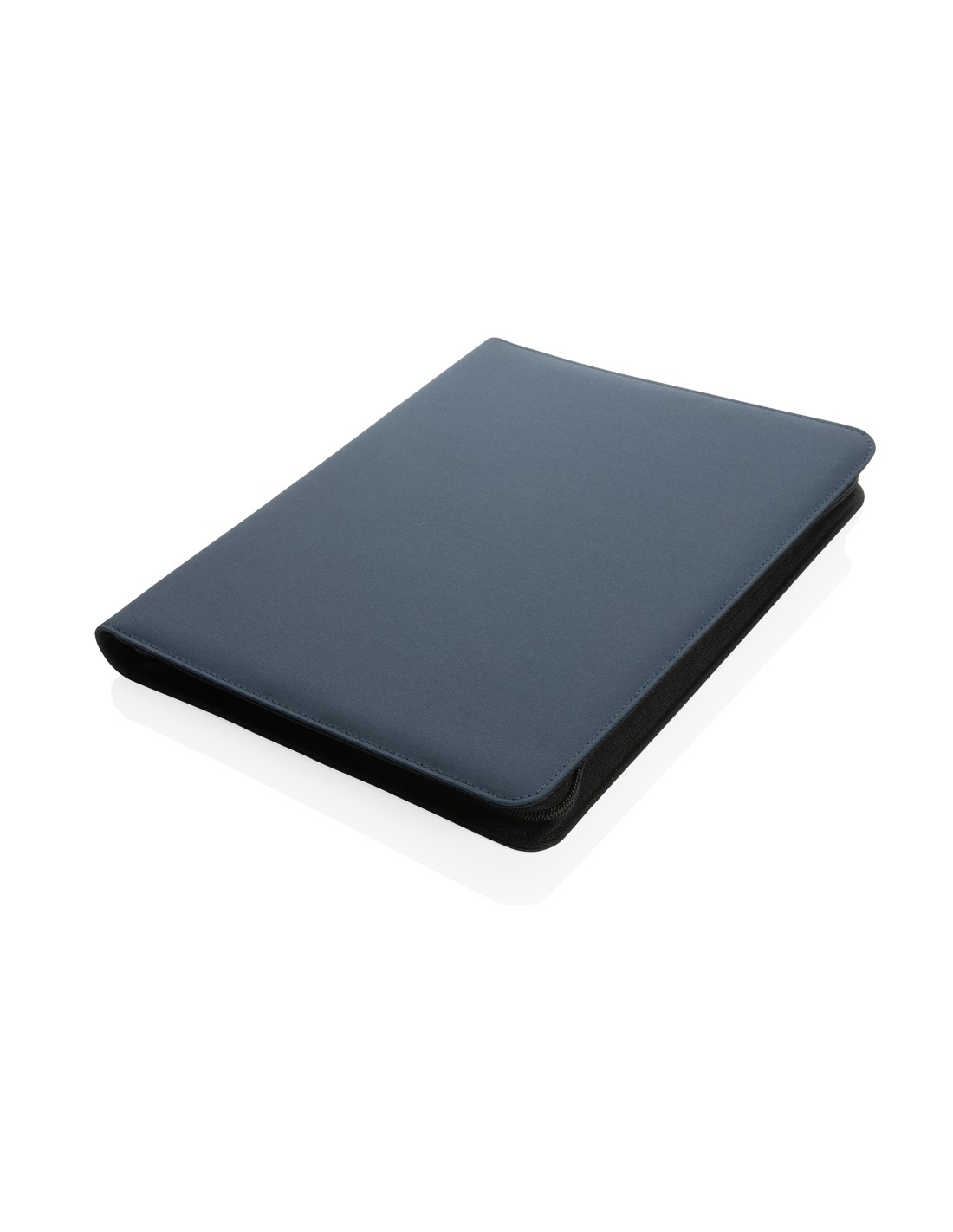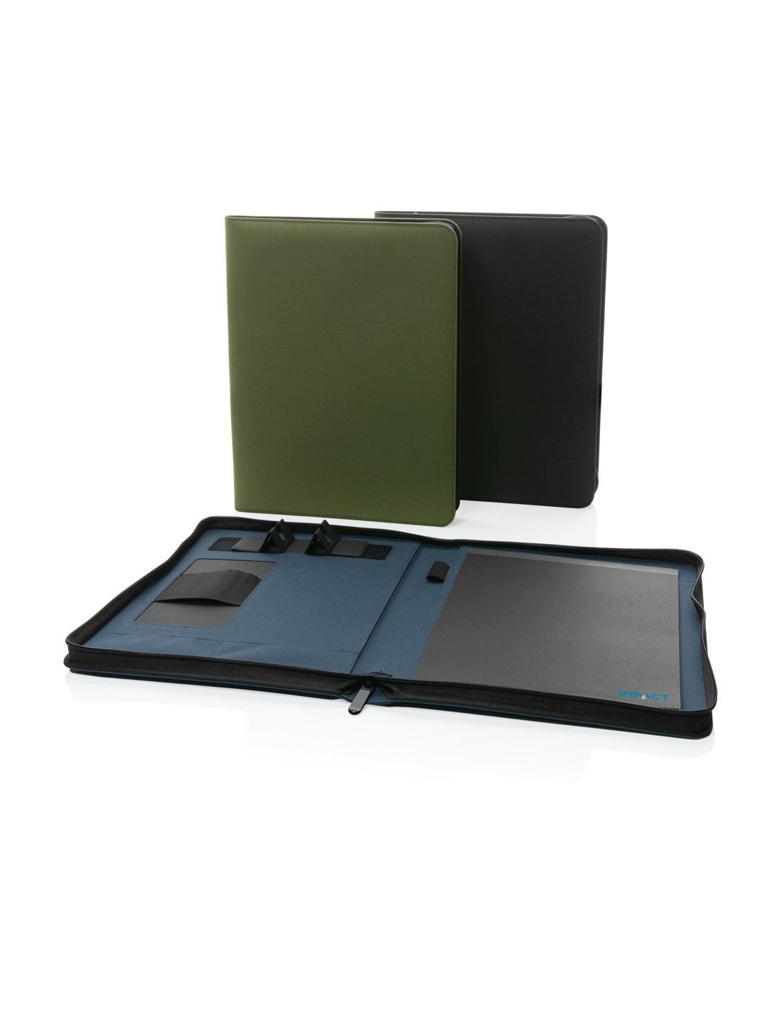 Questo portadocumenti 300D deluxe tech A4 Impact AWARE™ con cerniera dà un tocco di raffinatezza al tuo lavoro. Organizza i tuoi documenti importanti, carte e note. Include un blocco A4 in carta riciclata da 64 gm/2 da 20 pagine. All'interno c'è 1 tasca per telefono, un supporto per telefono, portapenna e 2 scomparti per biglietti da visita. Con tracciante AWARE™ che garantisce l'uso reale di materiali riciclati. Ogni portadocumenti e riutilizza 8 bottiglie in PET da 0,5 litri. Il 2% del ricavato di ogni prodotto Impact venduto sarà devoluto a Water.org. Senza PVC.