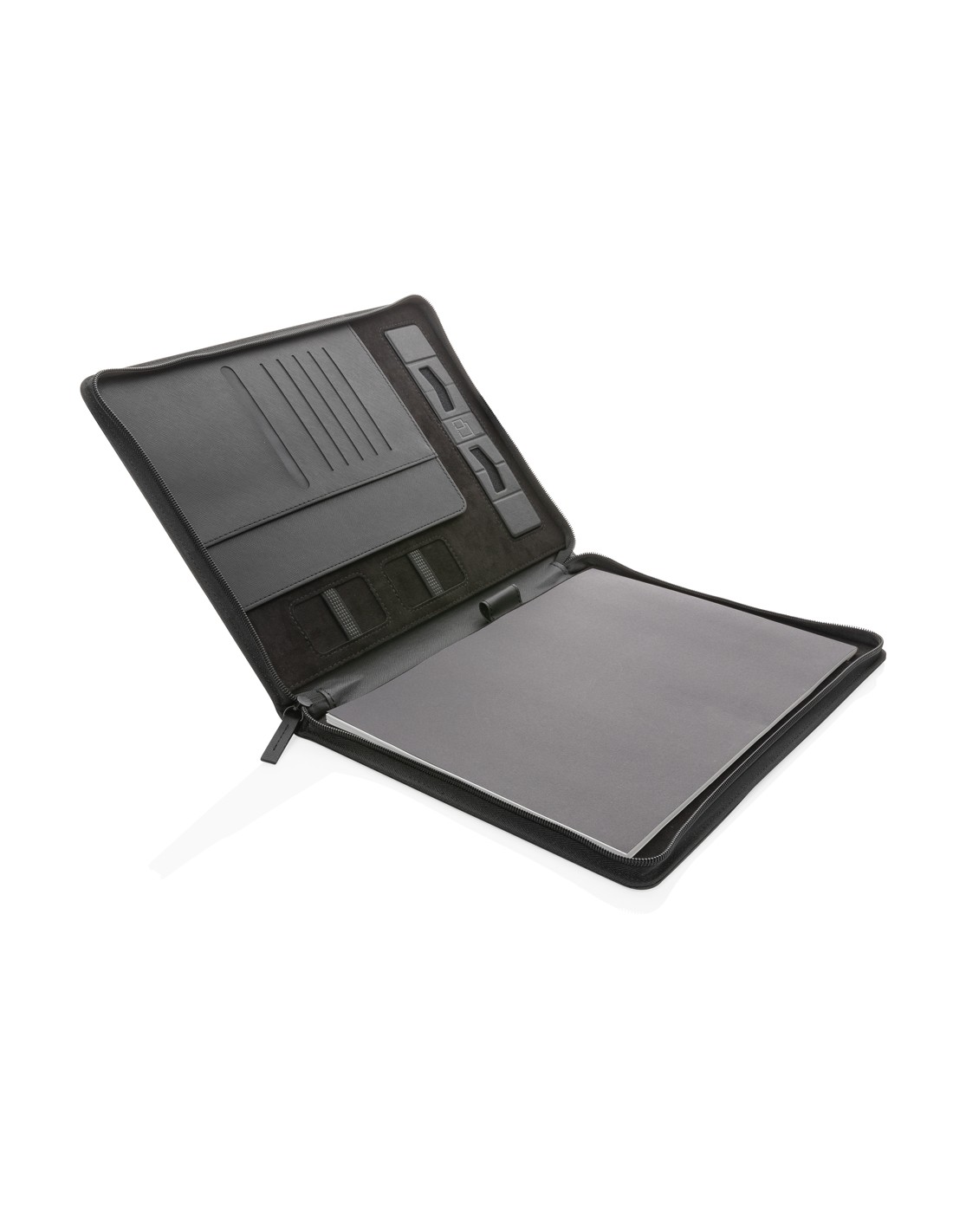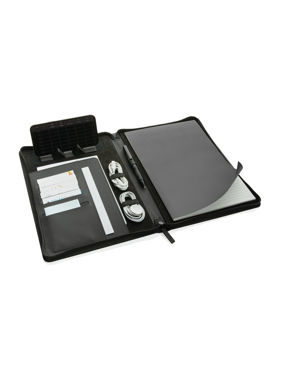 La collezione Swiss Peak Heritage parla il linguaggio dell'eleganza moderna. E' caratterizzata dall'iconica custodia con cerniera in PU riciclato italiano. L'interno offre un supporto per tablet/telefono, porta gadget, scomparti per biglietti da visita, custodie per appunti e fogli e portapenne. Include blocco per appunti A4 a righe in carta di pietra da 20 fogli. E' realizzato con materiali riciclati certificati RCS (Recycled Claim Standard). Lo standard RCS certifica l'utilizzo di materiali certificati durante tutta la filiera. E' realizzato in PU riciclato certificato RCS. Contenuto totale riciclato: 9% in base al peso totale dell'articolo. Senza PVC.
