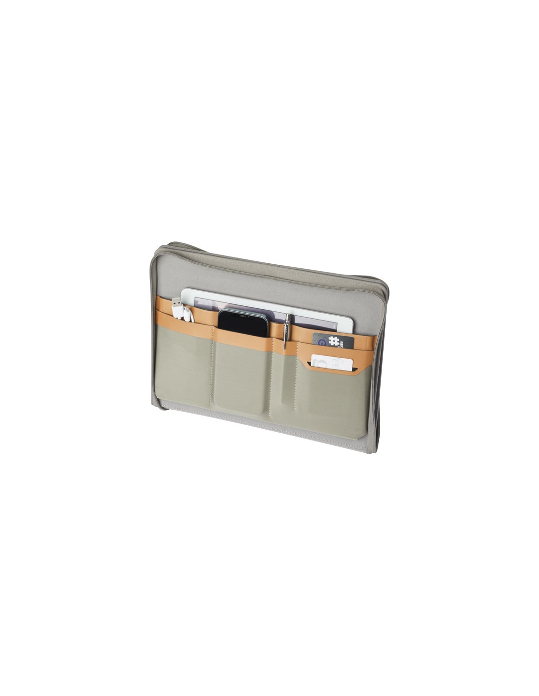 Portfolio A4 in RPET con dettagli in ecopelle. Blocco note A4 sostituibile.30 pagine a righe in carta riciclata. Porta penna. 4 portacarte, 3 piccole tasche e uno scomparto grande. Chiusura con cinturino magnetico. FSC®-certified | FSC MIX , P8.6, FSC-C213206