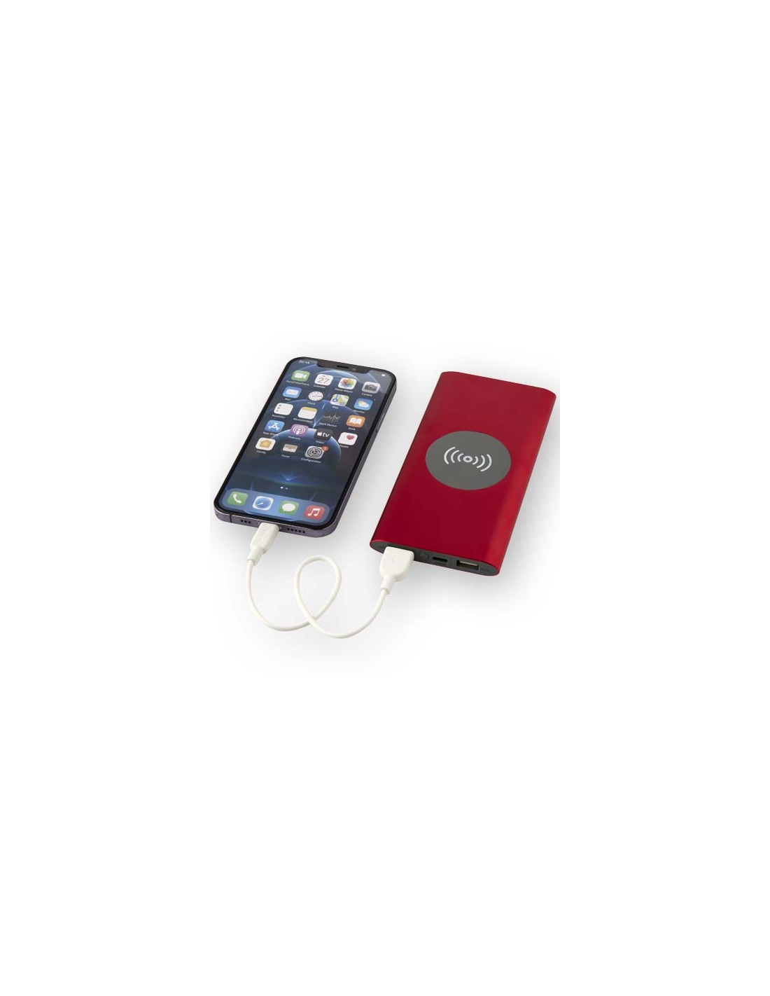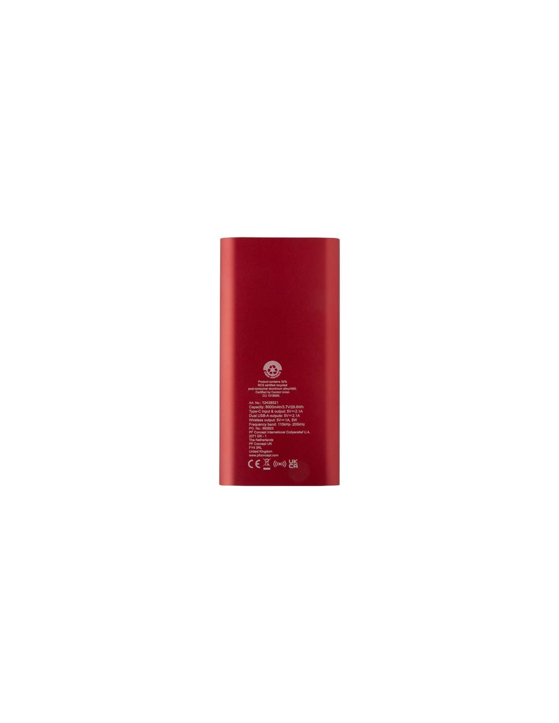 Power bank con porta di ingresso/uscita di Tipo-C e 2 porte USB-A che consentono di caricare 3 dispositivi contemporaneamente. Inoltre, supporta una ricarica wireless a 5 W per tutti i dispositivi abilitati Qi. Il power bank è caratterizzato da una batteria ai polimeri di litio da 8000 mAh, che fornisce una potenza in uscita totale di max 10 W. Questo power bank è realizzato con il 28% di plastica riciclata certificata RCS. Fornito con un cavo di ricarica in TPE da Tipo-C a USB-A.