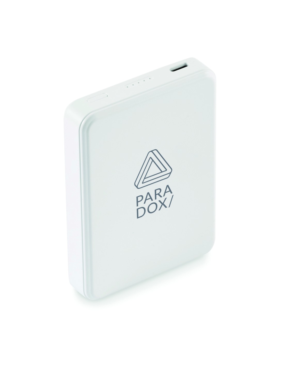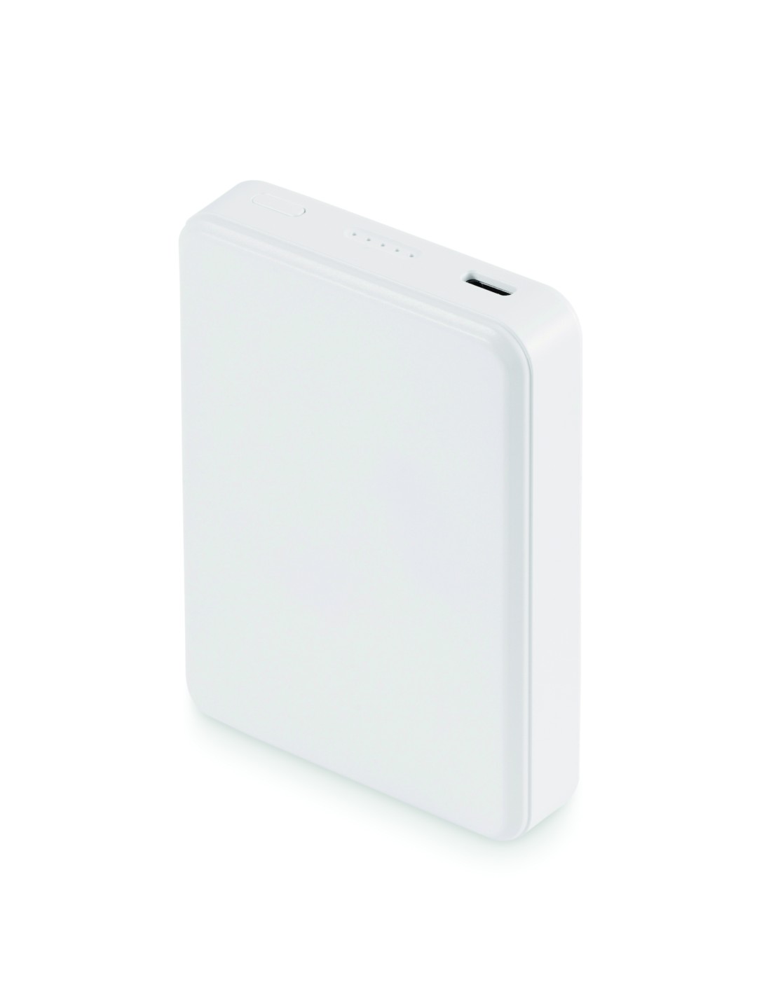 Power bank da 5000 mAh in ABS riciclato. Capacità per l'uso dello smartphone. Supporta la tecnologia di ricarica rapida (PD 20W). Ingresso/uscita: Tipo-C.