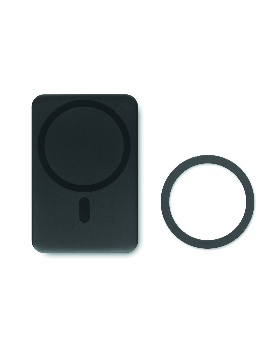 Caricatore wireless magnetico in bamboo (15W) e PB (5000 mAh). Uscita: DC 9V/2,22A (20 W). Include un anello metallico magnetico per la ricarica di altri telefoni.