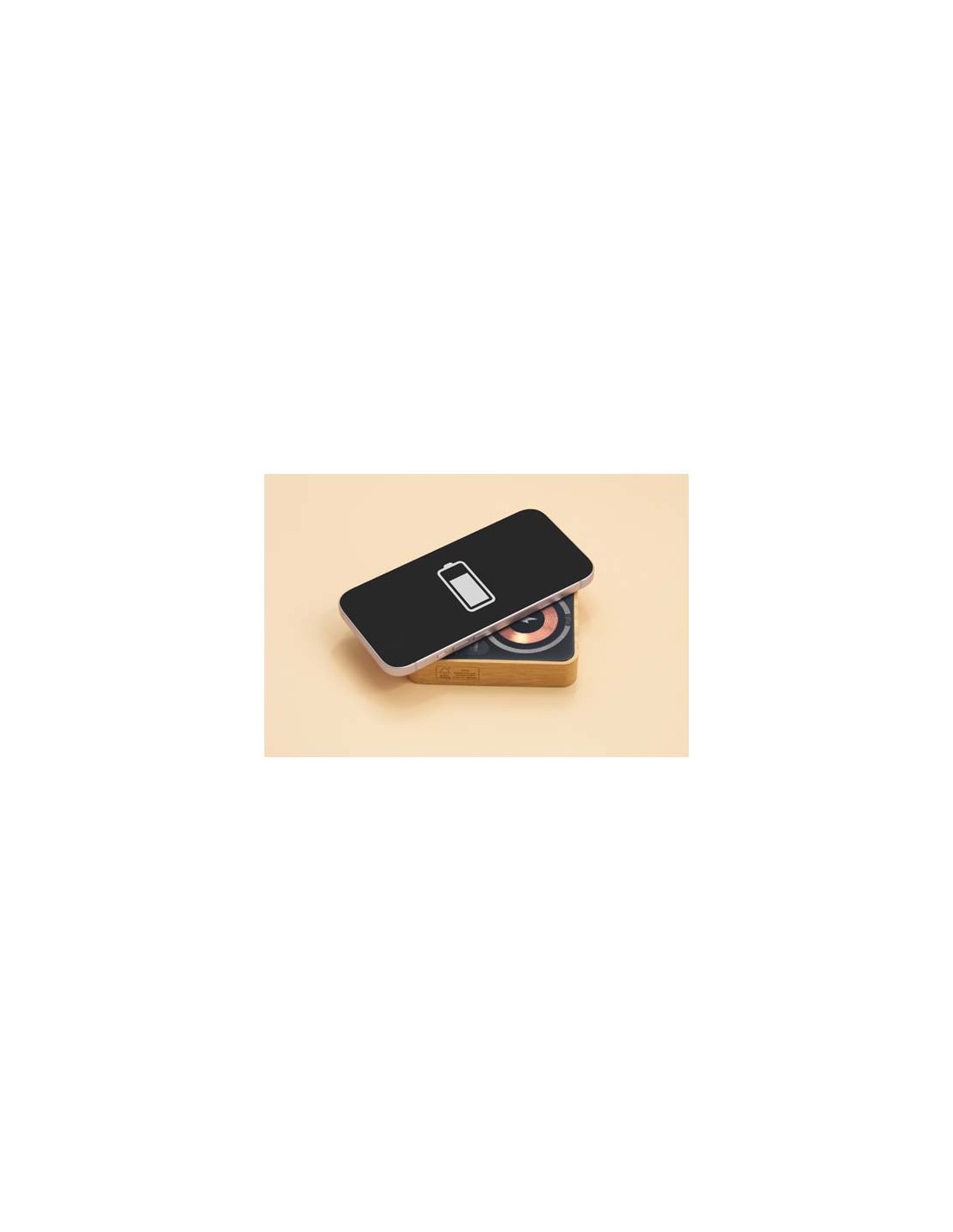 Power bank da 15 W e 10.000 mAh MagSafe con finitura in bambù, dotato di una potente uscita Tipo-C da 20 W (ricarica rapida PD). Dispone di un cavo di ricarica 3 in 1 compatibile con dispositivi Tipo-C, Android e iPhone, che consente di caricare più dispositivi contemporaneamente. Per i telefoni privi di tecnologia MagSafe integrata (iPhone 12 e successivi), è incluso un anello magnetico. Il power bank è personalizzabile con un logo luminoso a colori o inciso al laser. Fornito in una confezione regalo.